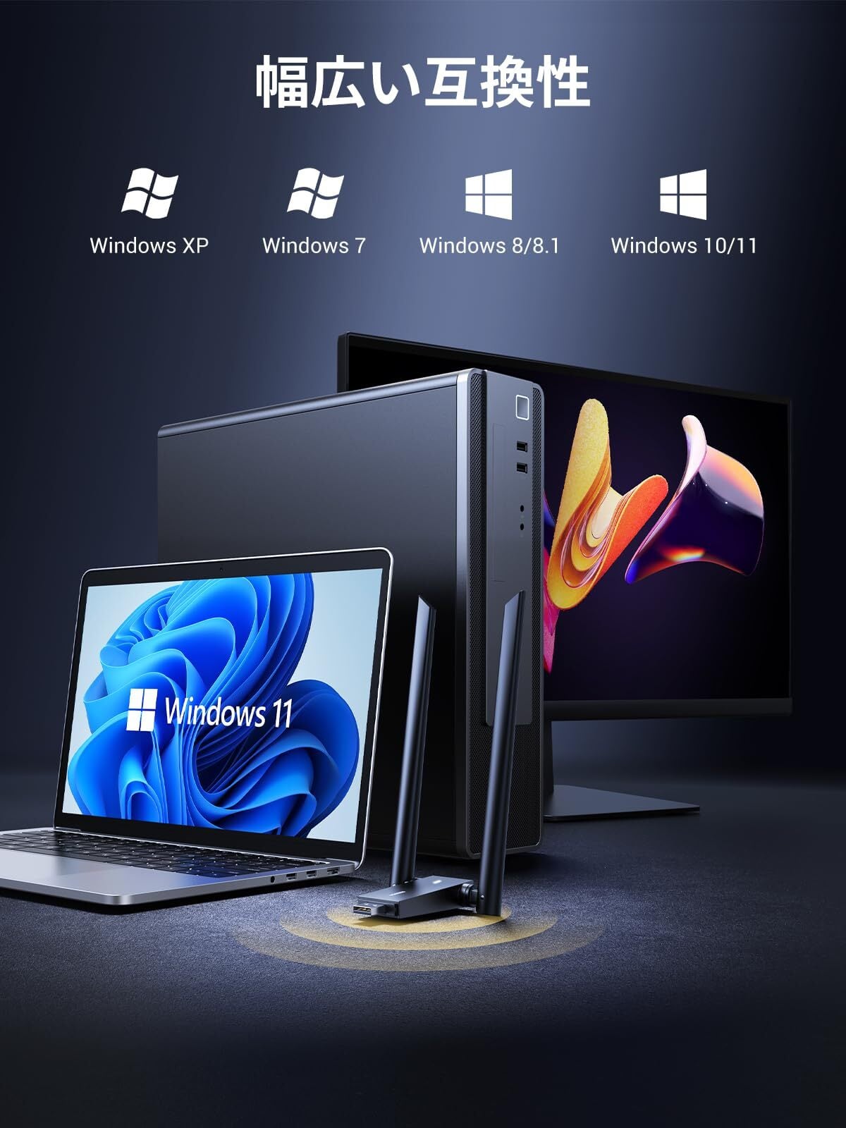 ▶【幅広い互換性・簡単使用】Windows 11/10/8.1/8/7に対応して、お持ちのPCが古いWiFi規格にしか対応していなくても、わざわざ買い替える必要はありません。※Mac OSには非対応!又はドライバー不要で、プラグ&プレイで、簡単設置!