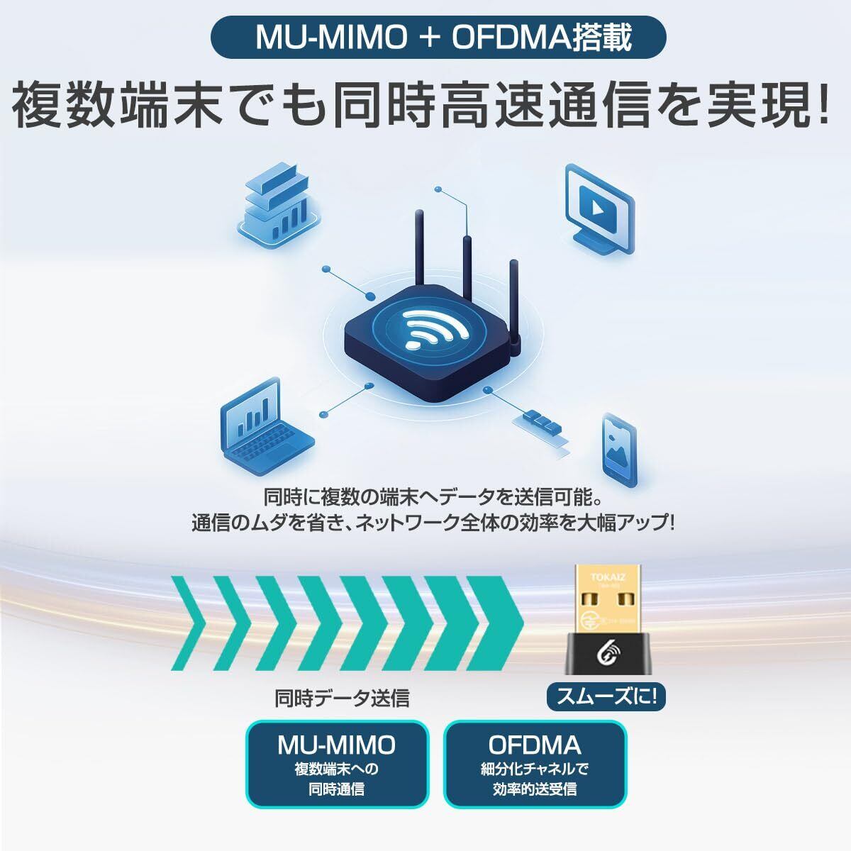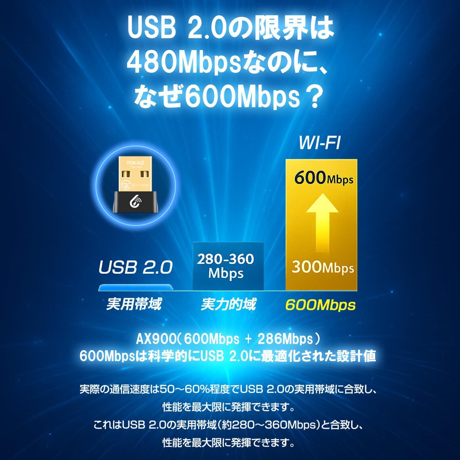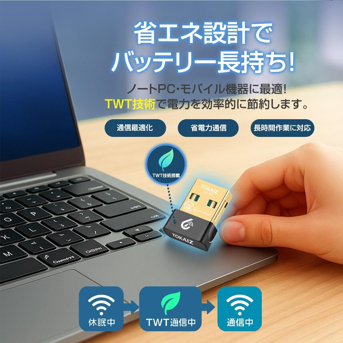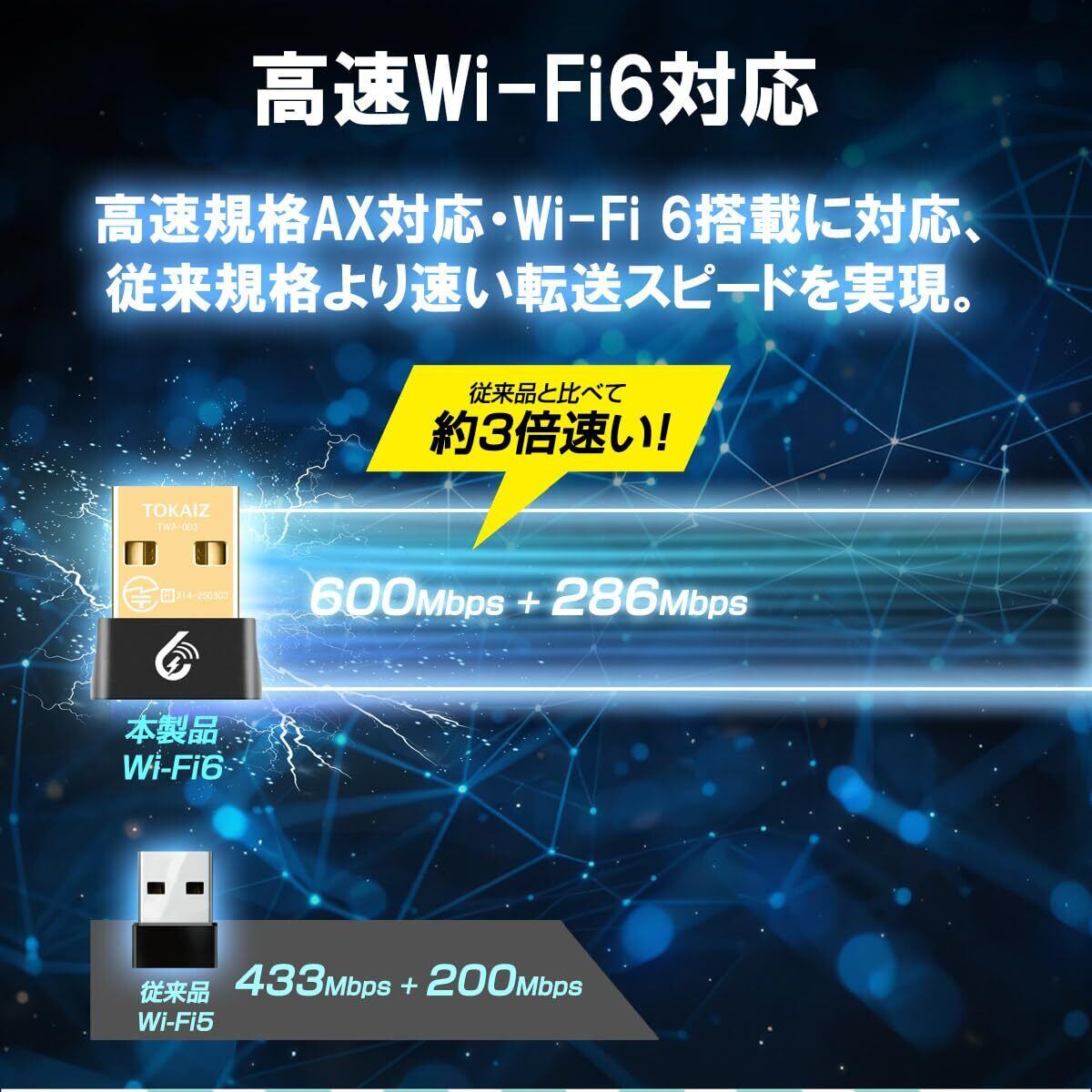 TOKAIZ 無線LAN 子機 wifi6 USB アダプター 業界最小クラス AX900 無線lanアダプター MU-MIMO OFDMA搭載 高速通信 600+286Mbps ドライバー内蔵 5GHz 2.4GHz Windows11/10/8/7対応 TWA-003