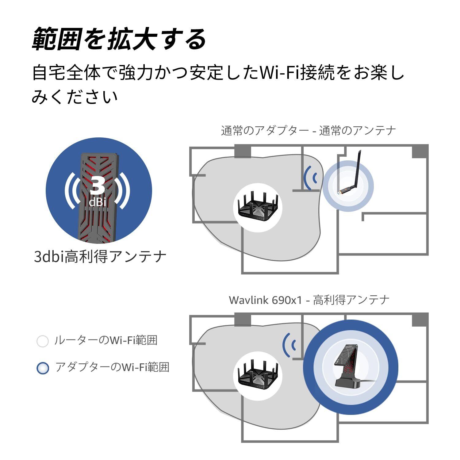 WAVLINK USB3.0 WiFi 6 アダプター、無線LAN 子機、AX1800 USB 3.0 WiFi ドングル for PC、デュアルバンド 5GHz(1201Mbps)+2.4GHz(574Mbps)、MU-MIMO、ビームフォーミング、WPA3 暗号化、4x3dBi アンテナ、内蔵ドライバー、Windows 11/10 をサポート (WN690X1F)