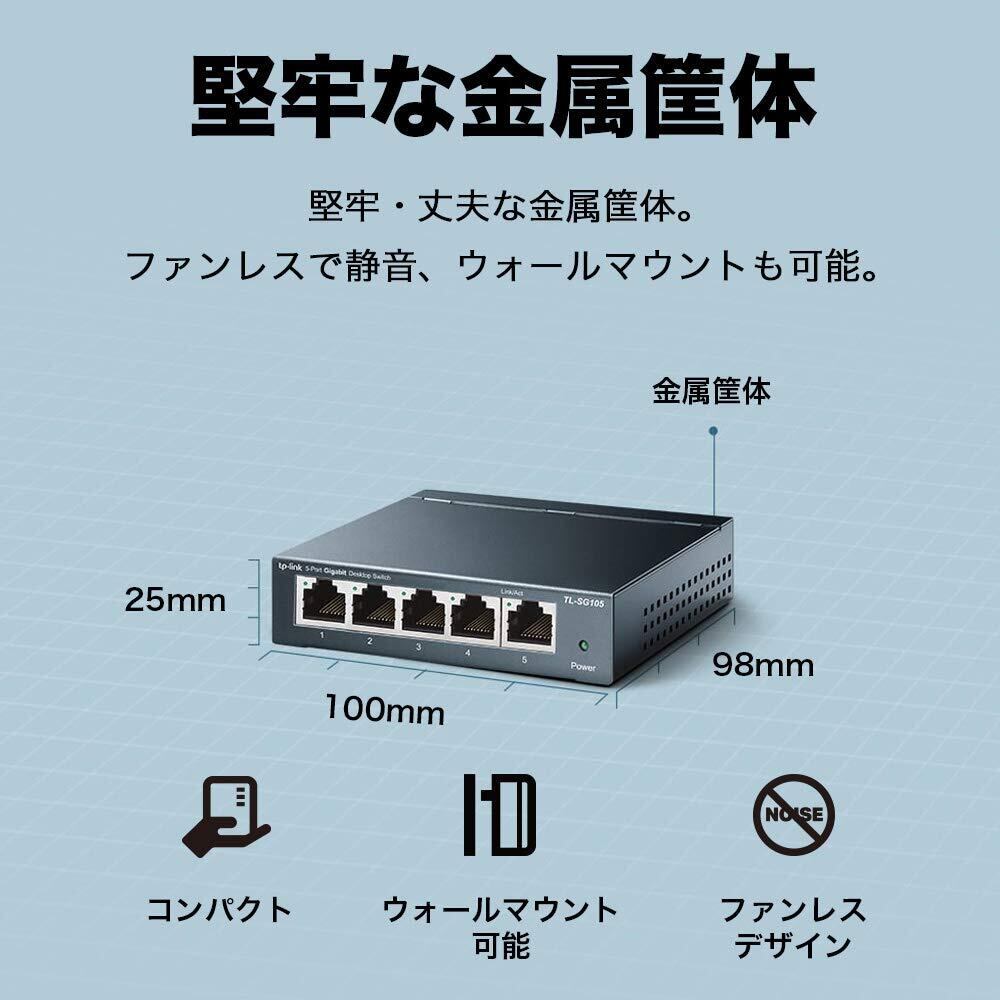 TP-Link 5ポート スイッチングハブ 10/100/1000Mbps ギガビット 金属筺体 設定不要 メーカーライフタイム TL-SG105