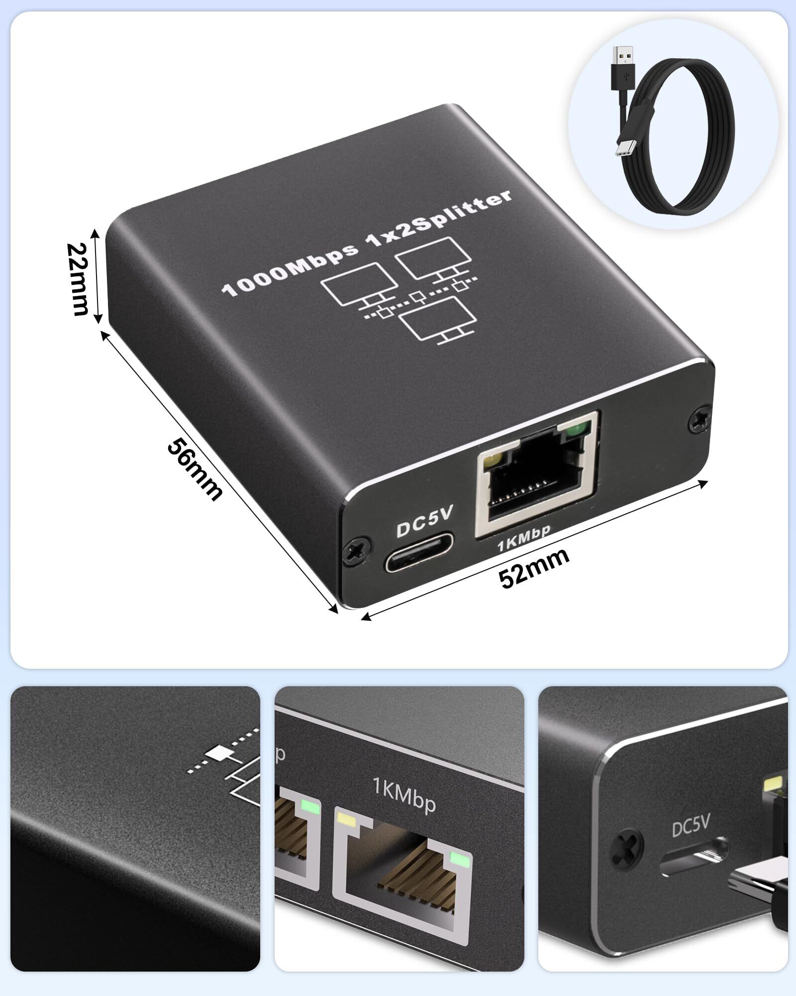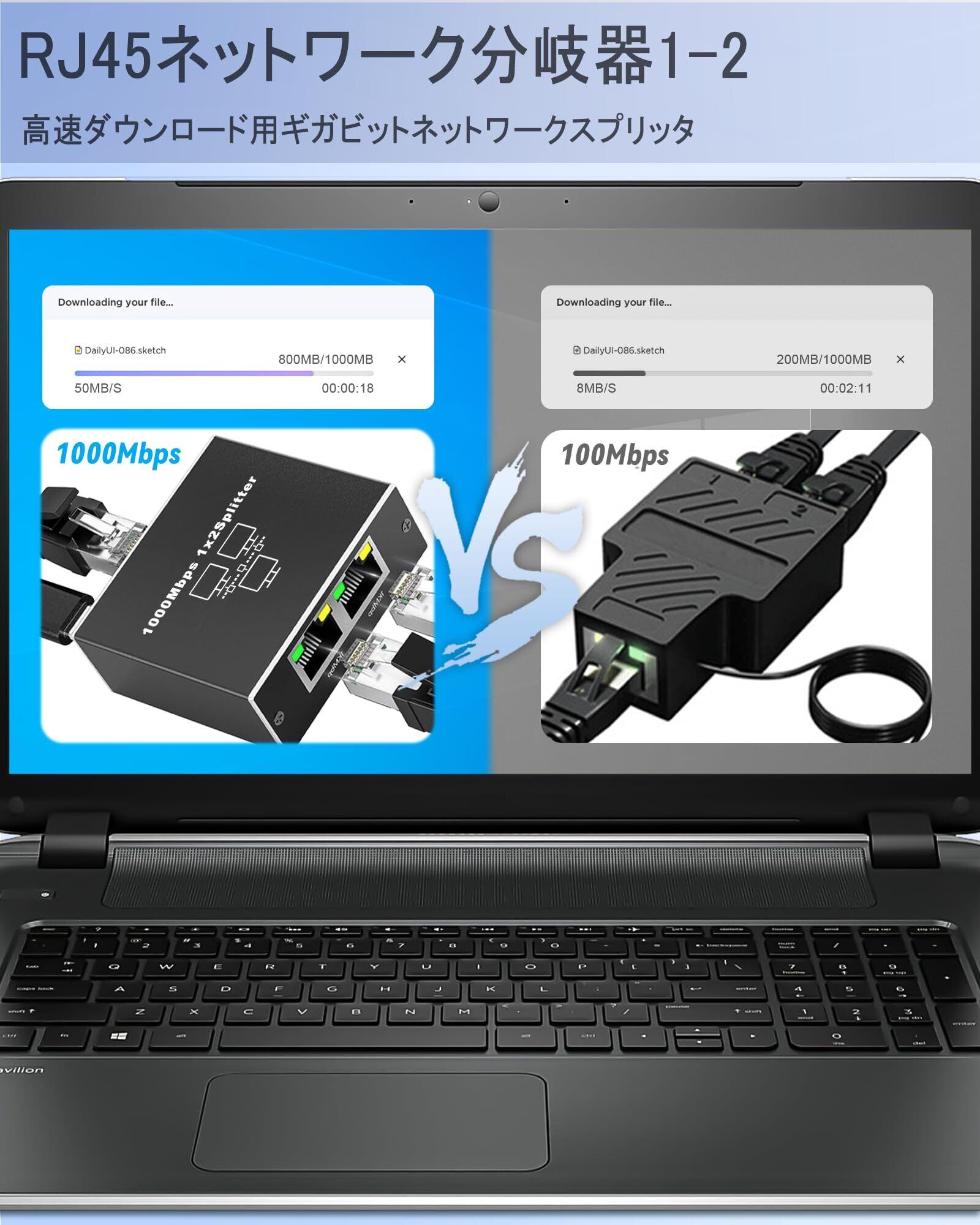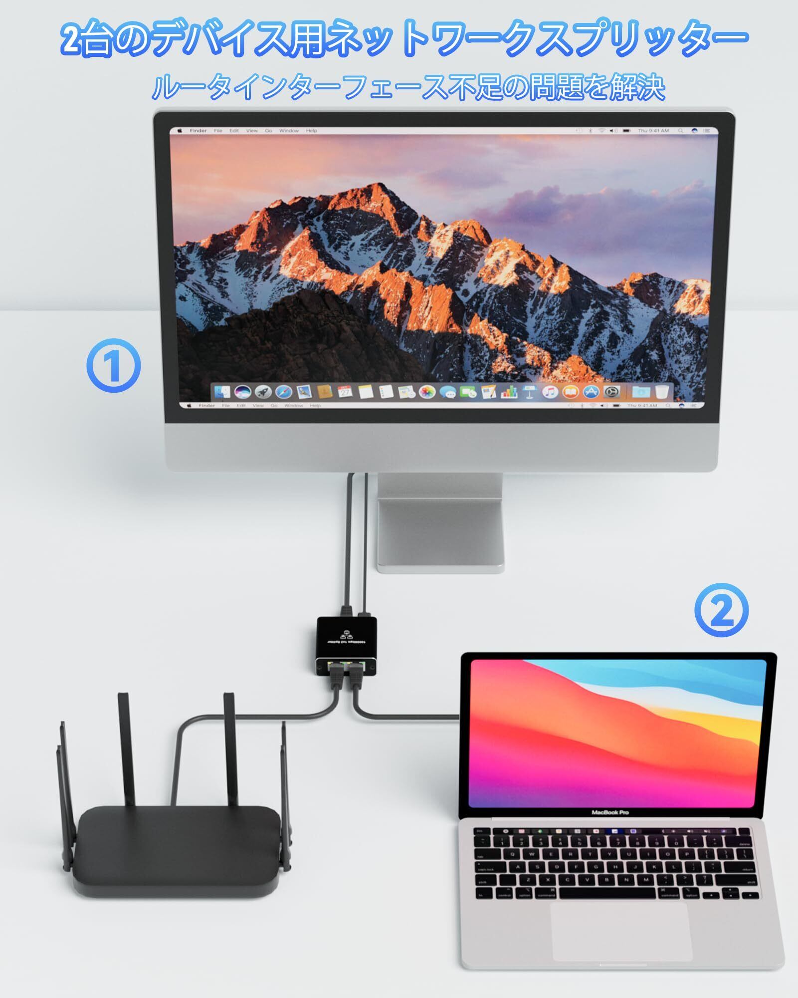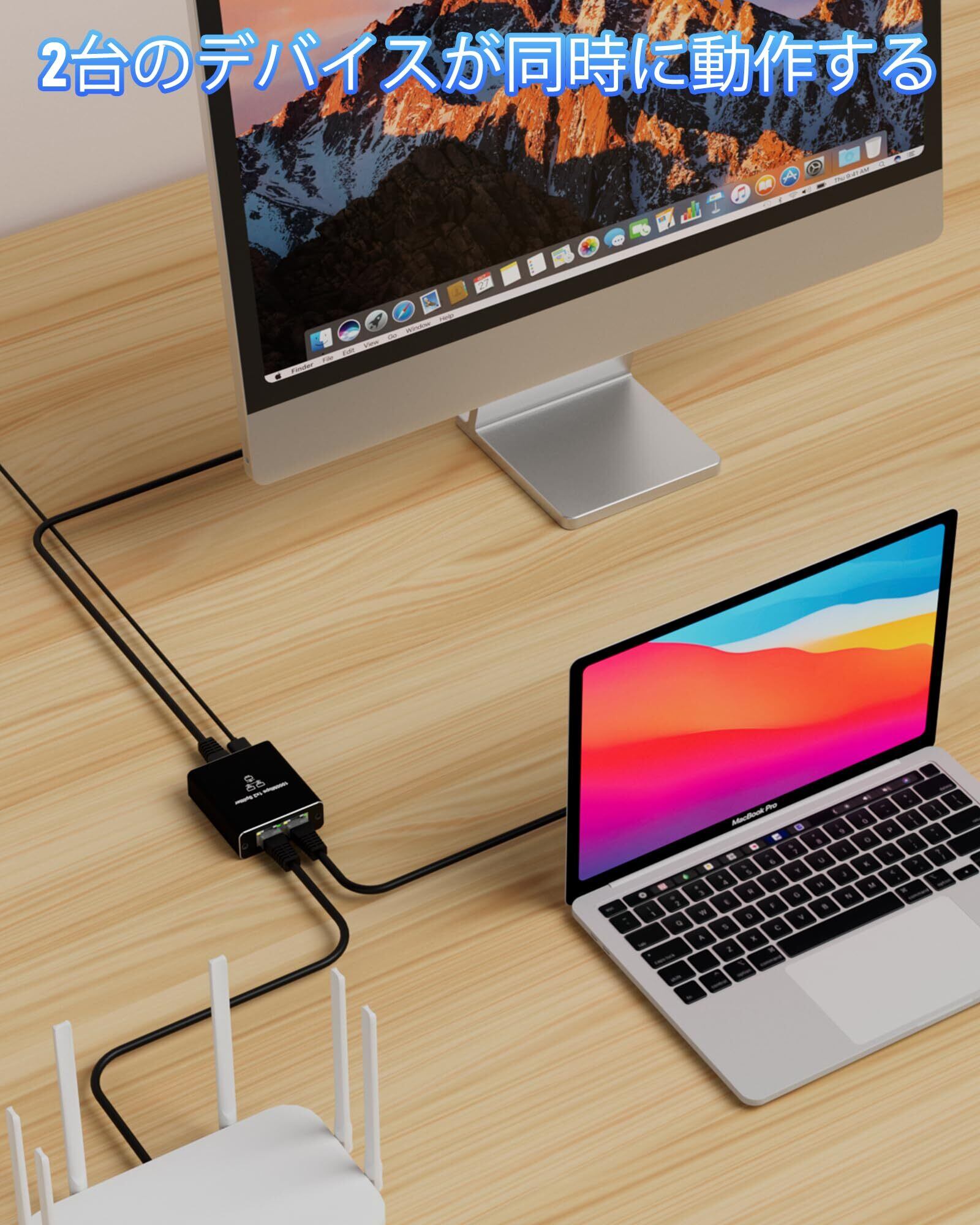 【1000Mbps 超高速転送&干渉防止】 スイッチングハブ技術により、2 台のデバイスを同時に安定した 1000Mbps 高速通信を実現。信号干渉なしでインターネット・データ伝送を快適に!(1000Mbps のネットワーク速度を楽しむには、Cat6 以上のネットワーク ケーブルを使用することをお勧めします。)