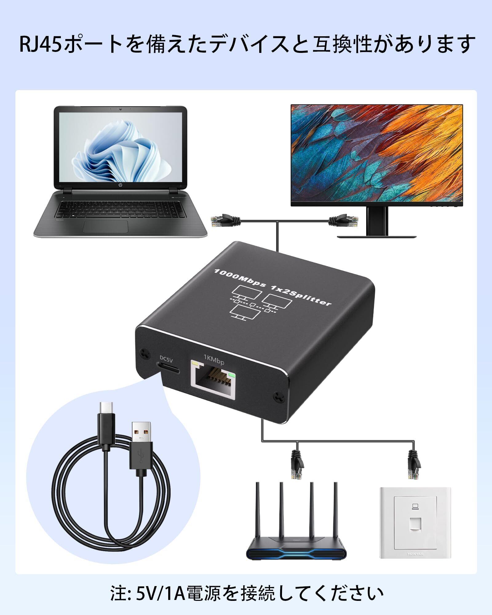 Lan ハブ Lan 分配器 RJ45 Lanケーブル 分岐 1000Mbps スイッチングハブ 1入力2出力 有線LAN中継器 Cat5/Cat5e/Cat6/Cat7/Cat8対応 ネットワーク拡張 Switch/PS5/PS4に対応 2台同時使用