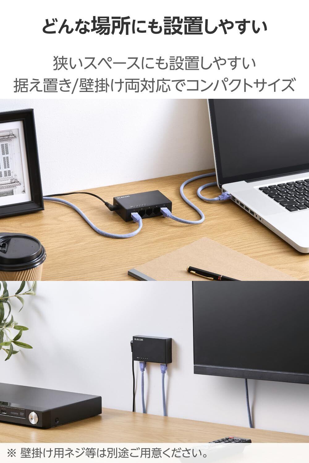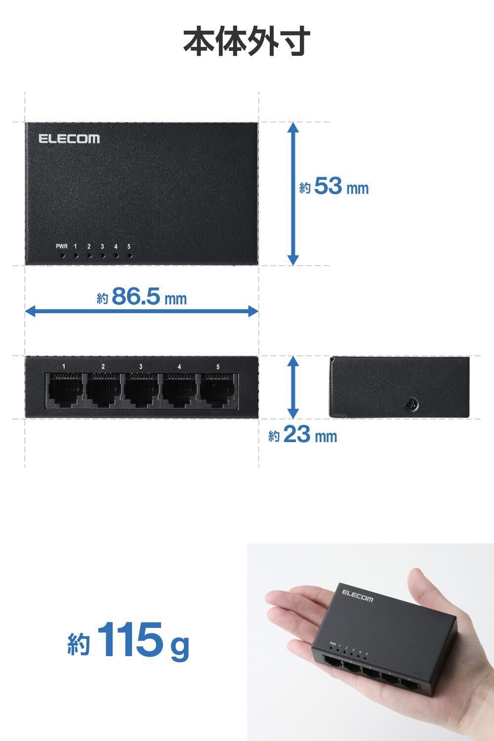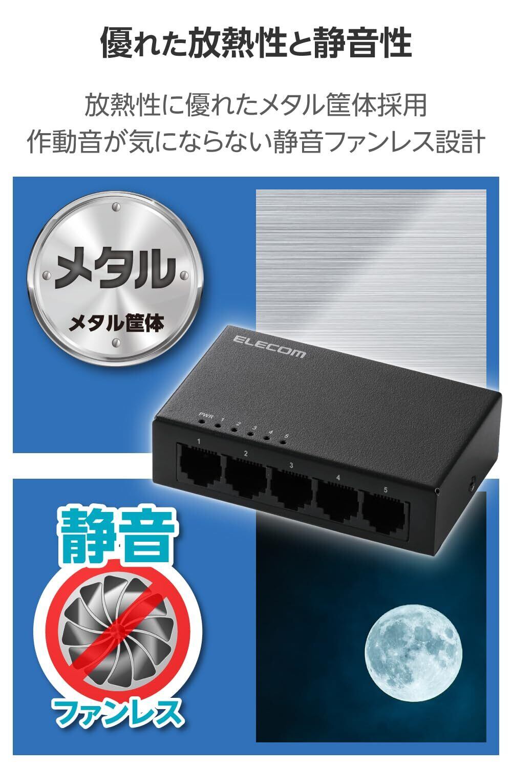 エレコム スイッチングハブ ギガビット 5ポート 金属筐体 AC電源 静音ファンレス ブラック EHC-LG05M-B