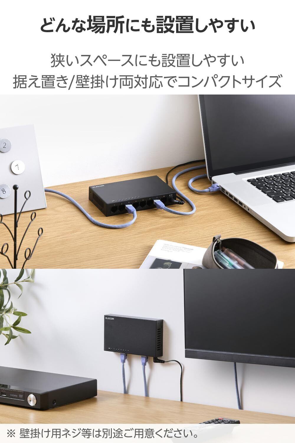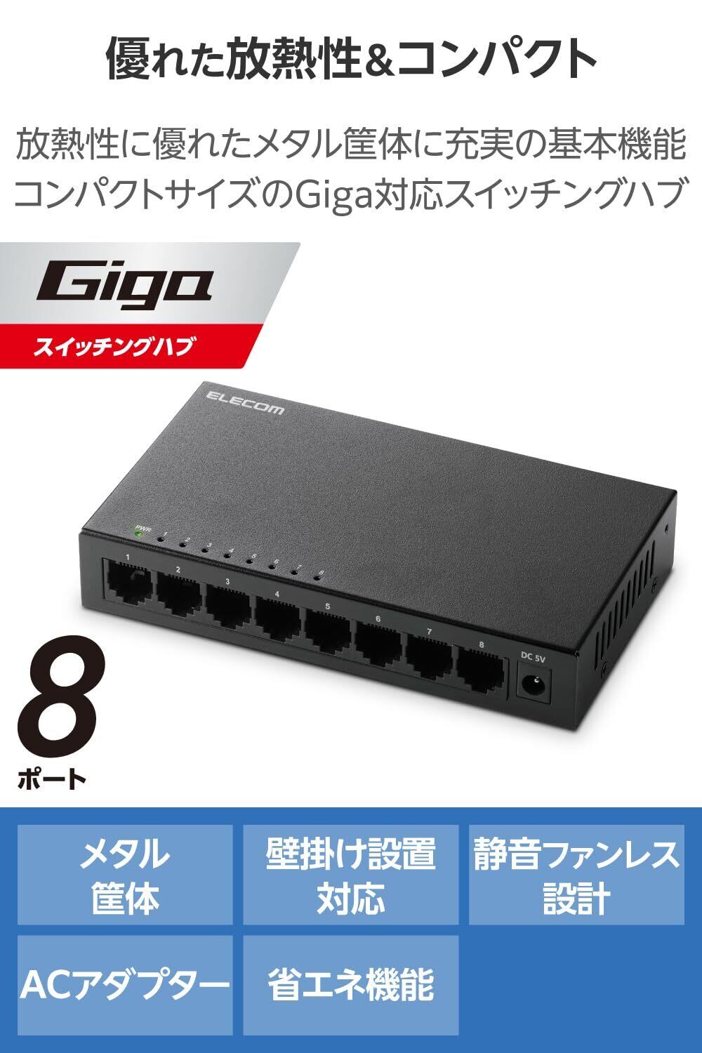 エレコム スイッチングハブ ギガビット 8ポート 金属筐体 AC電源 静音ファンレス ブラック EHC-LG08M-B