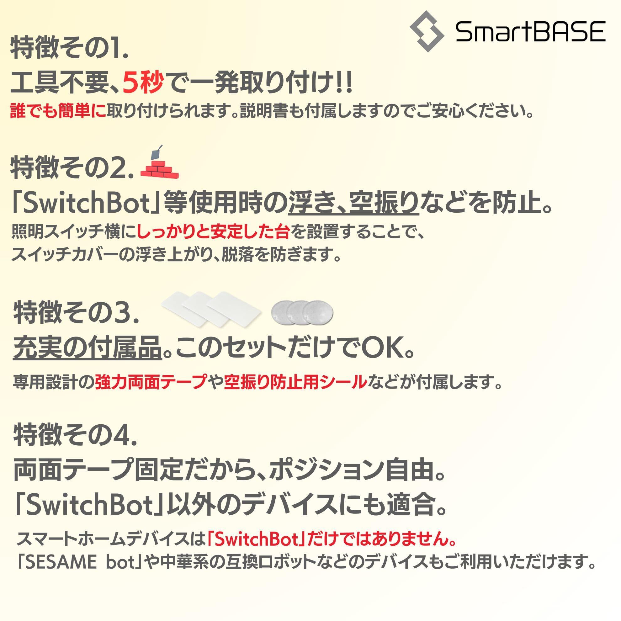 工具不要、はめ込むだけ!5秒で設置できるスマートホームデバイス用マウントができました。スマートデバイスの動作が不安定でお悩みではありませんか?SmartBASEを使えば、SwitchbotやSESAME botなどのスイッチを押す指ロボットの動作を劇的に安定化できます!