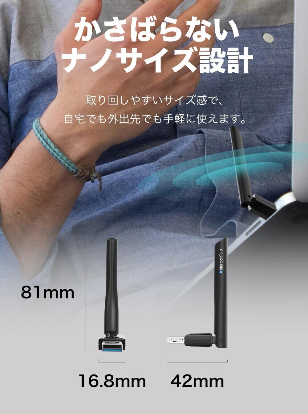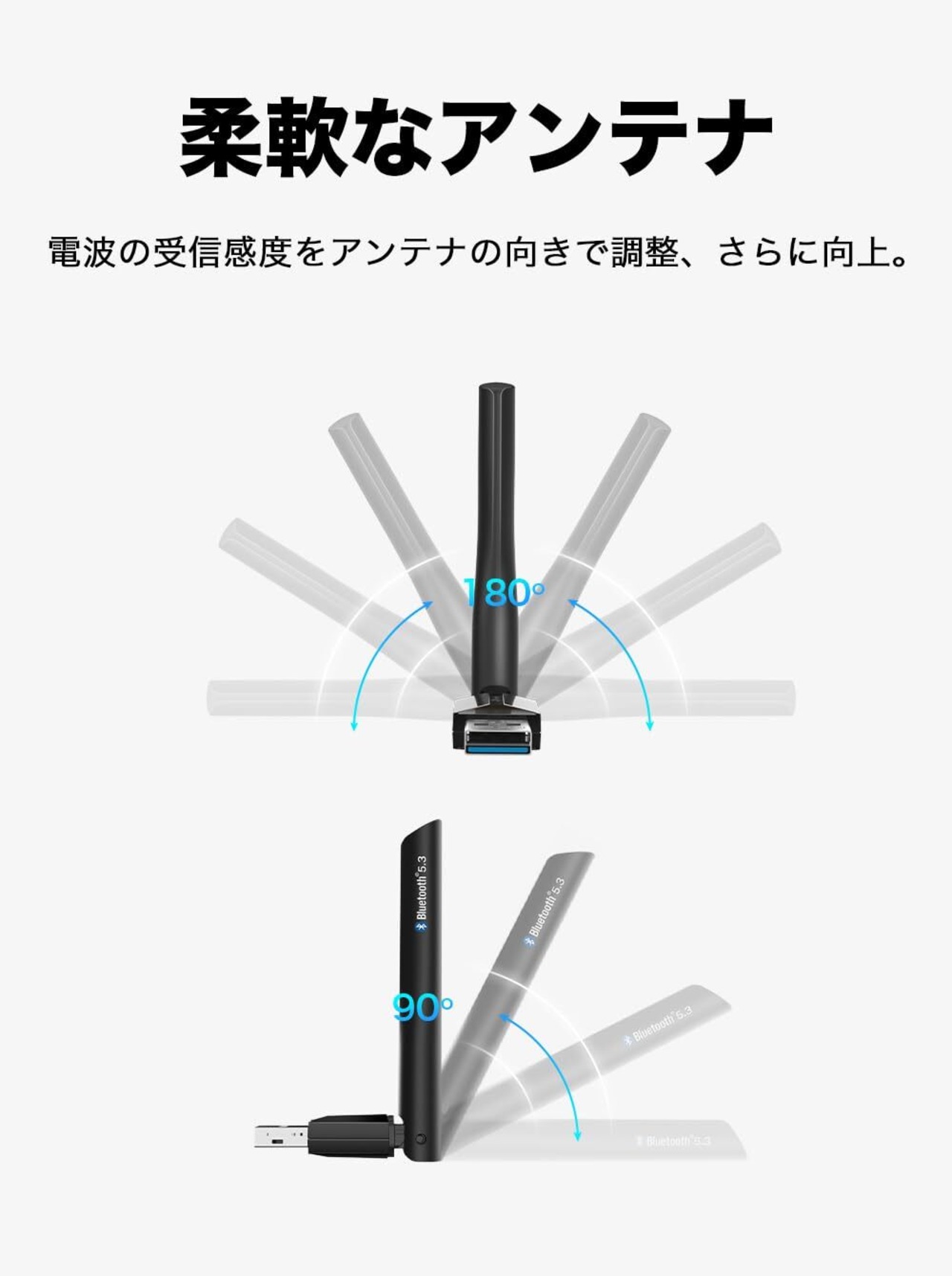 [特徴] ロングレンジアンテナを搭載した Bluetooth 5.3対応のUSBアダプター。