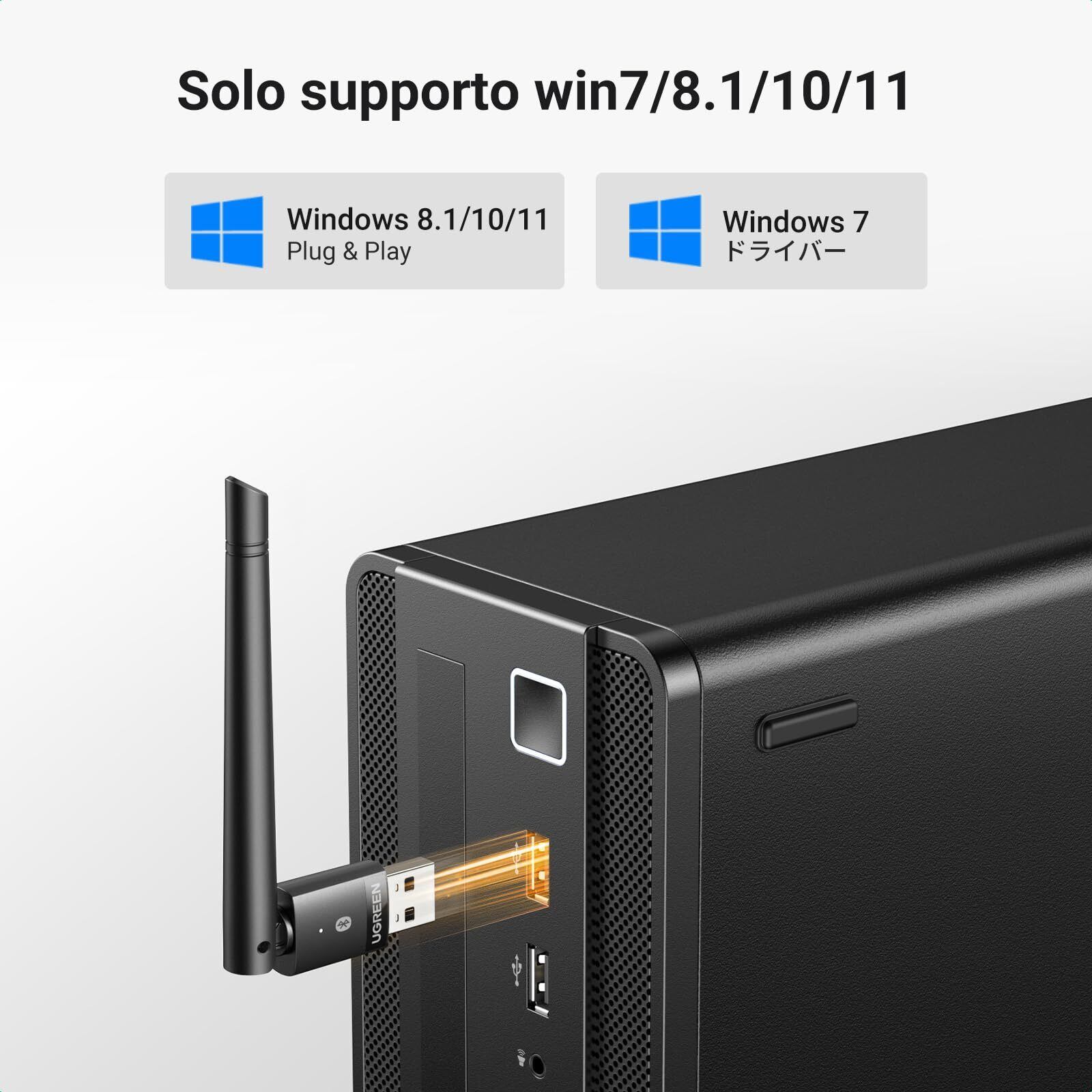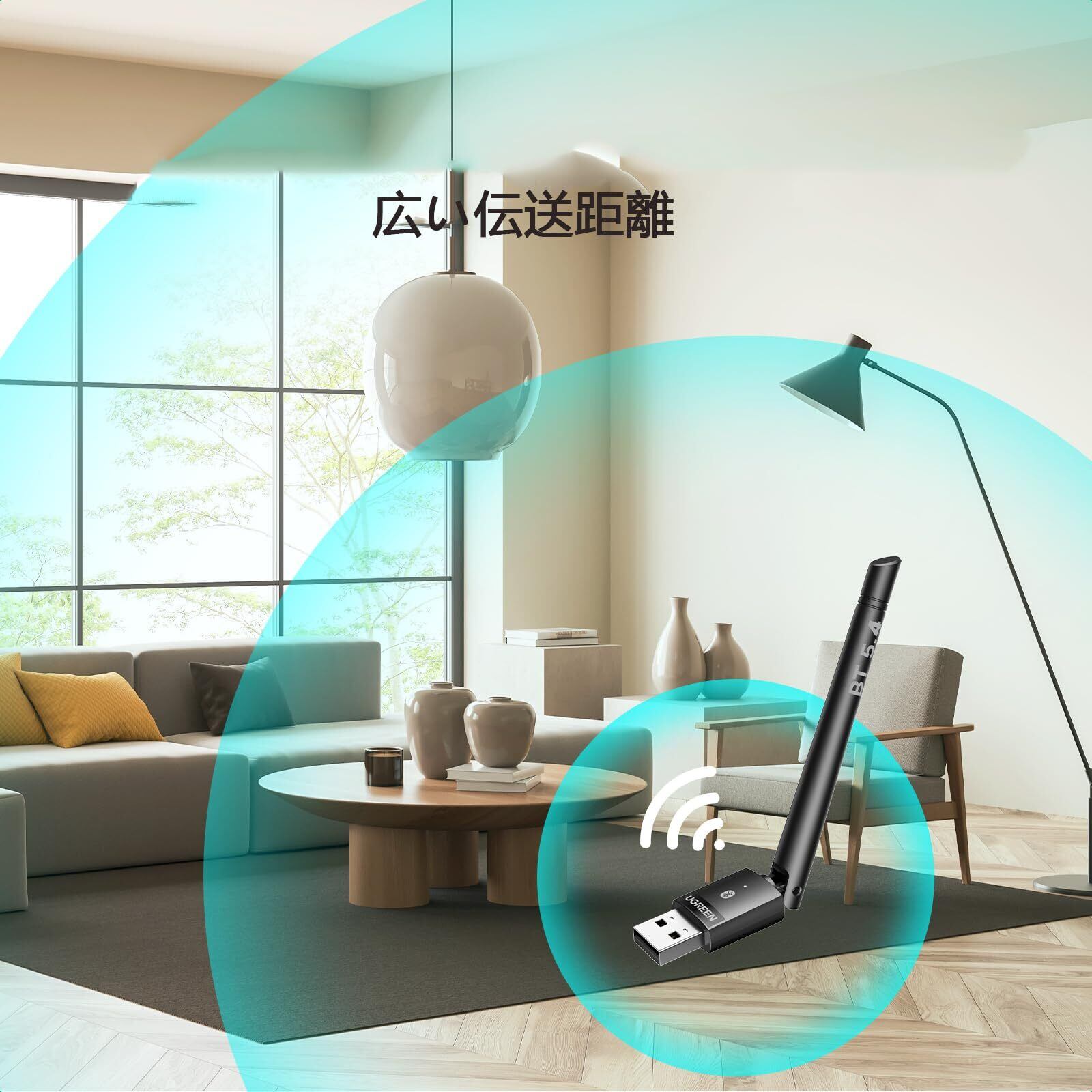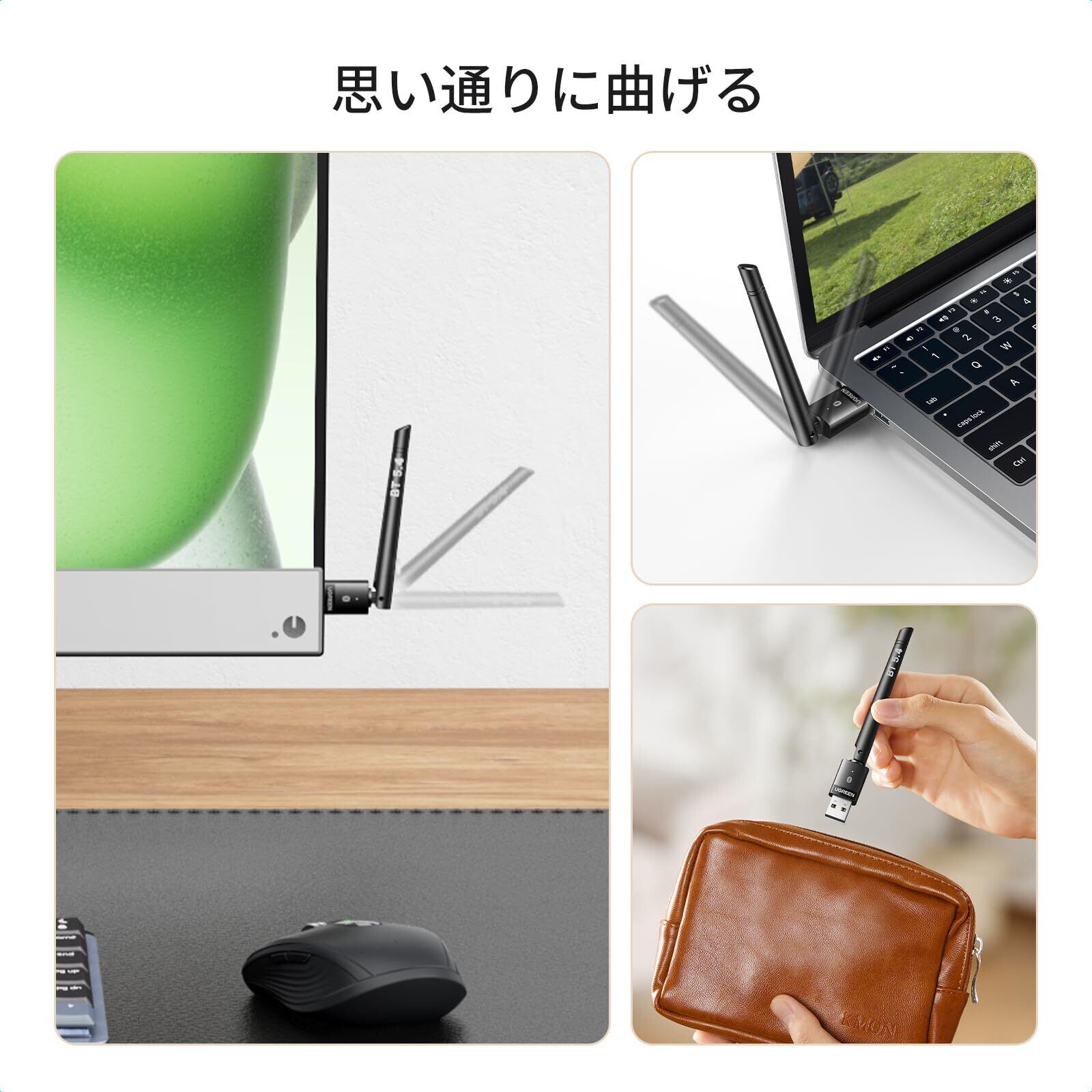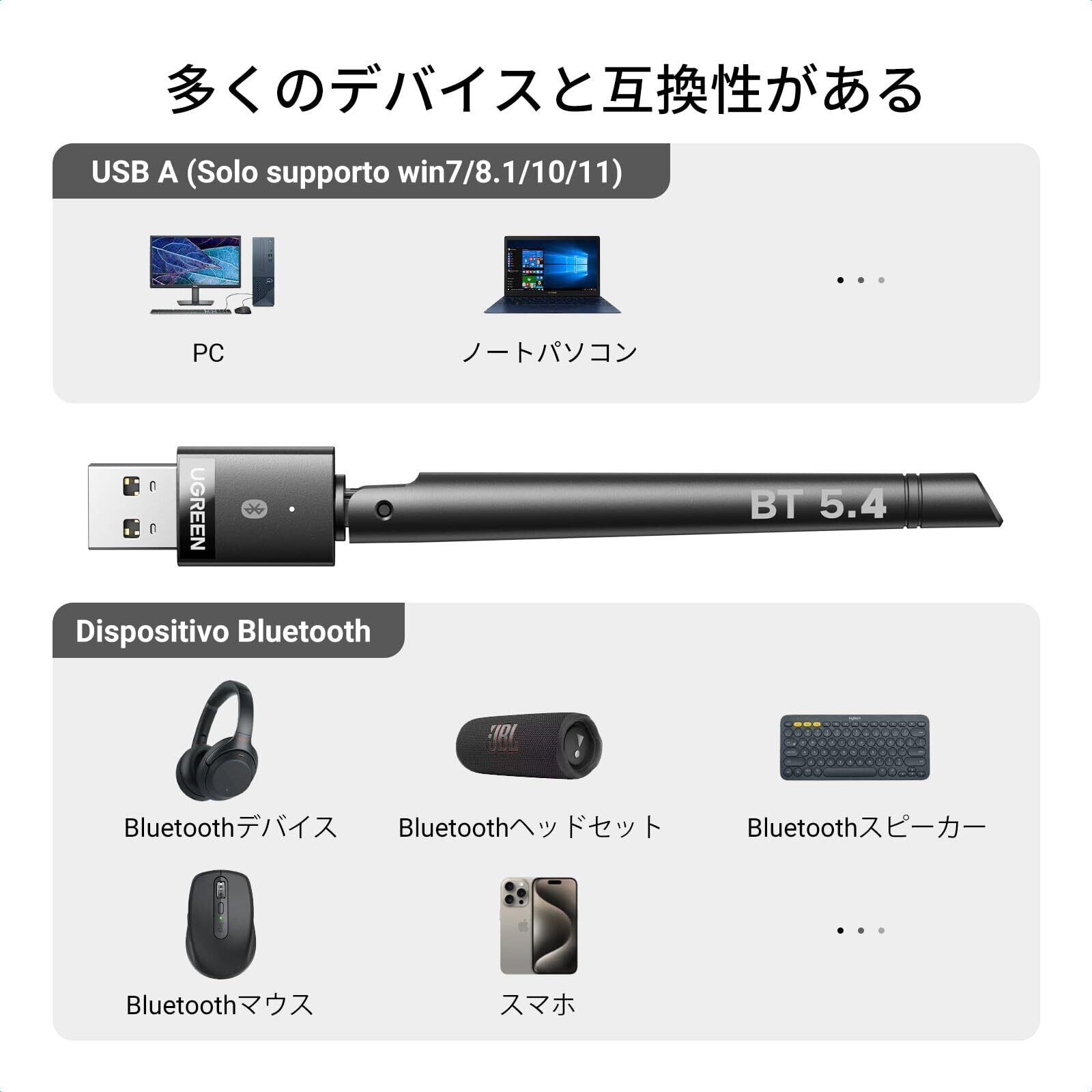 UGREEN PC用長距離Bluetooth 5.4アダプタ, 長伝送距離 USB Bluetoothアダプター(BR+EDR+BLE), Bluetoothマウス/キーボード/ヘッドホン/スピーカー用ワイヤレス転送, デスクトップ/ラップトップWin11/10/8.1サポート【TELEC認証済】
