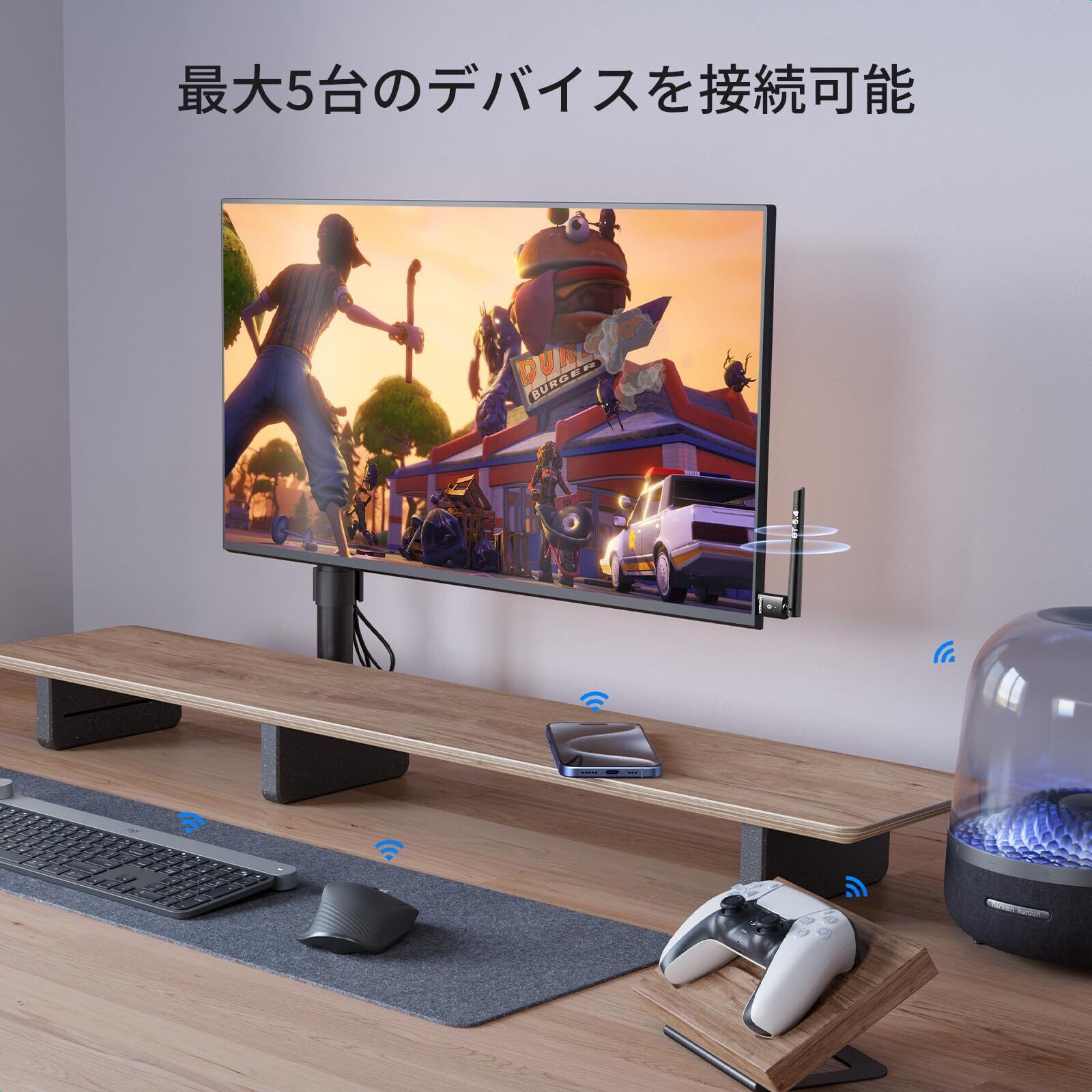 【最大5デバイスの同期接続】: 完全に同時に複数のデバイスを接続するためにUSB Bluetoothアダプタを使用することができ、同時にBluetoothスピーカー、キーボード、ヘッドセット、マウスなどの5つのデバイスで動作することができます、キーボードや他のデバイスを使用しながら、高品質の音楽を聴くことができることを意味します。