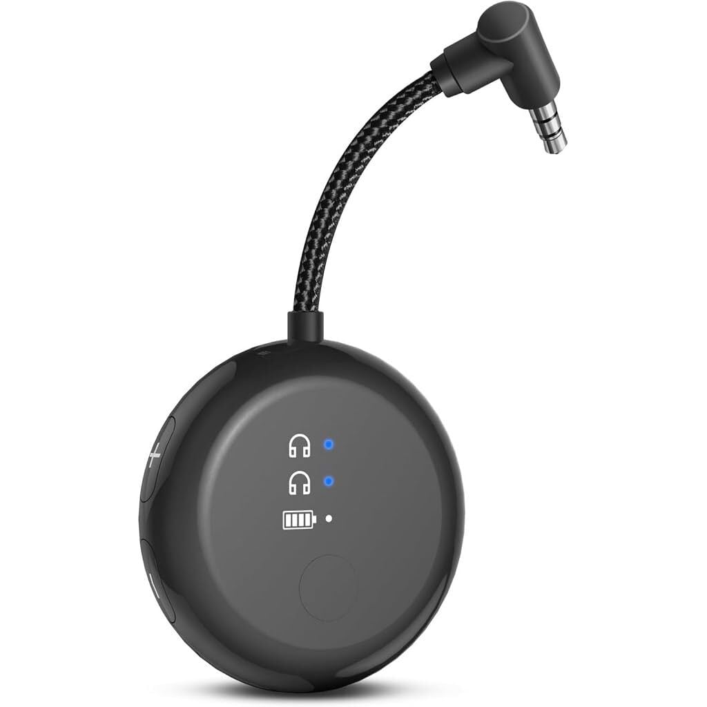 [旅行中のエンターテイメントを強化] Bluetooth ヘッドフォンまたはイヤホンを機内エンターテイメント システムにシームレスに接続できるように設計された SoundJet R1 は、AirPods、QuietComfort 45、WH-1000XM5、Momentum 4、およびその他の Bluetooth オーディオ デバイスと互換性があります。