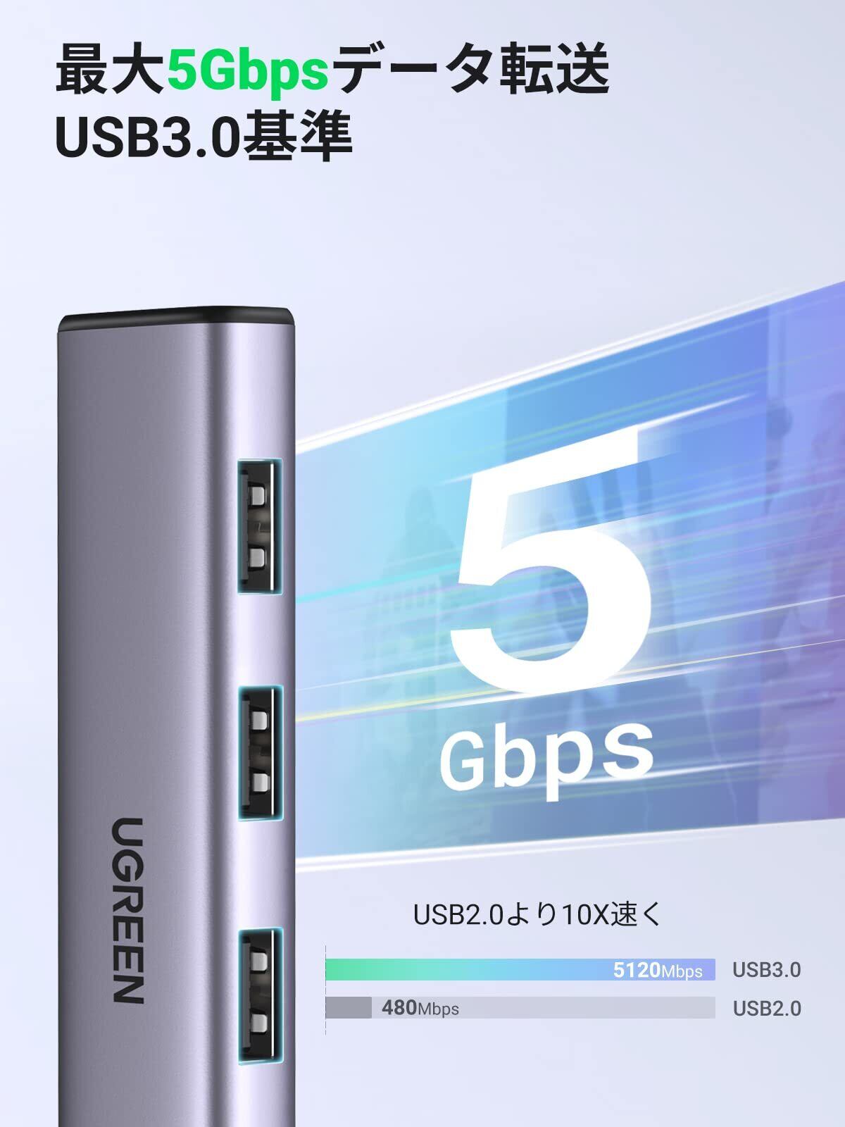 UGREEN USB 3.0 有線LANアダプター 1000Mbps ギガ 5-in-1 3*USB-Aポート 5Gbps高速転送 LAN ハブ RJ45 Nintendo Switch/windows/macOS 対応