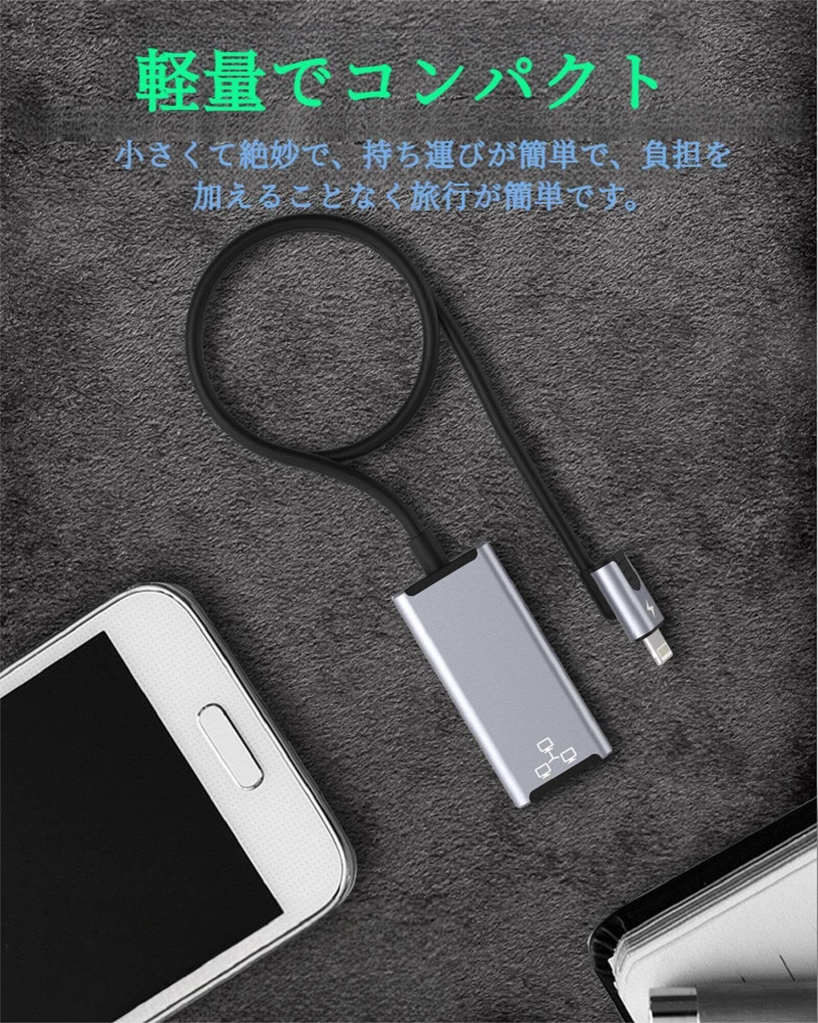 【i-phone 有線lanアダプター】最大 100mpb のネットワーク、ワイヤレス ネットワークよりも高速で安定しています。 ゲームプレイに最適なコンパニオンであり、ワイヤレス ネットワークがない場合でも、有線ネットワーク アダプターを使用すると非常に便利です。