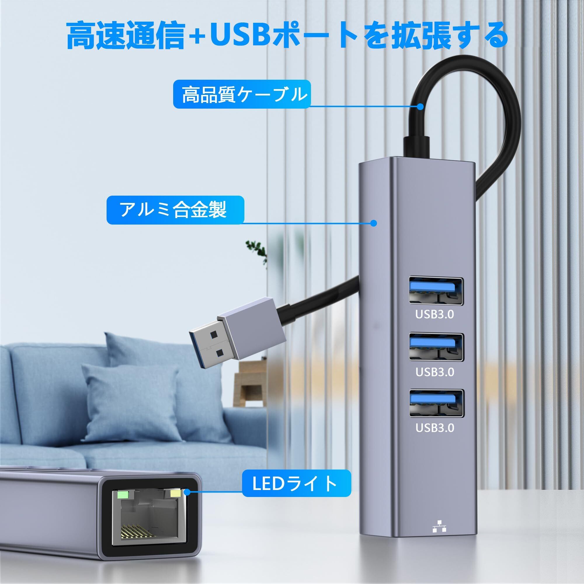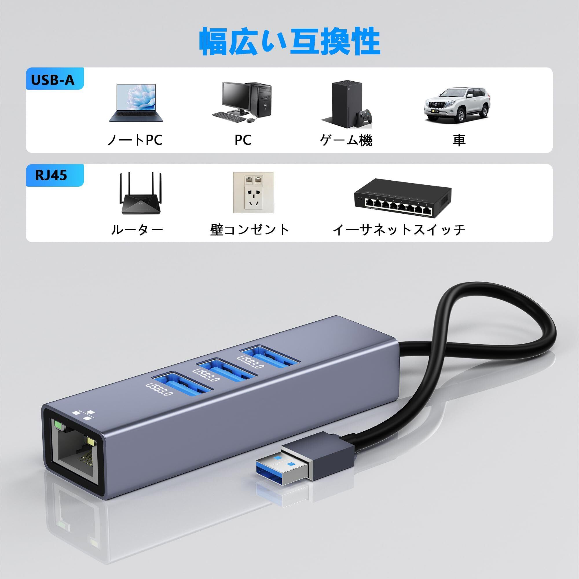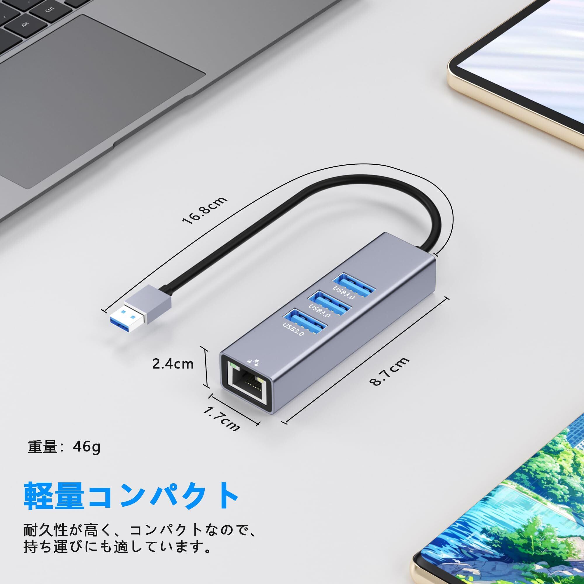 Aibilangose USB-A LAN HUB-02 4-IN-1 有線LANアダプター イーサネットアダプタ RJ45 100Mbps + 3つUSB3.0ポート USB-A Hub Windows/Mac OS/Linux対応