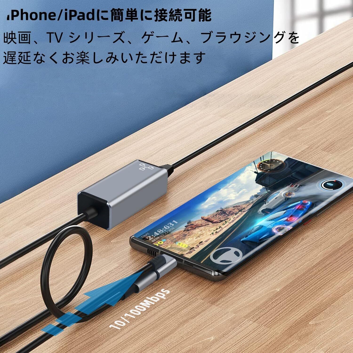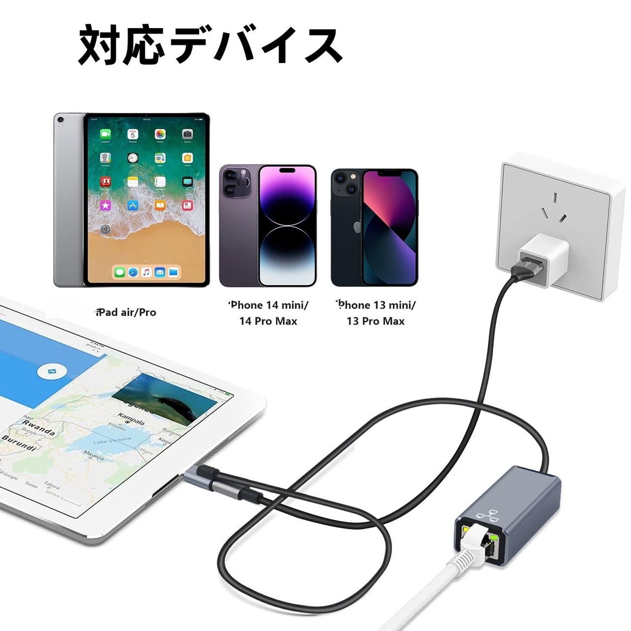 有線LANアダプター iPhone/iPad用 Lighting-RJ45 イーサネット 変換アダプタ 30-100/Mbps高速安定転送 有線アダプタ在宅勤務 ウェブ会議対応 海外旅行 iPad/i-Phone 14/13 Pro/12/XRなど対応 プラグ&プレイ 設定/電源不要
