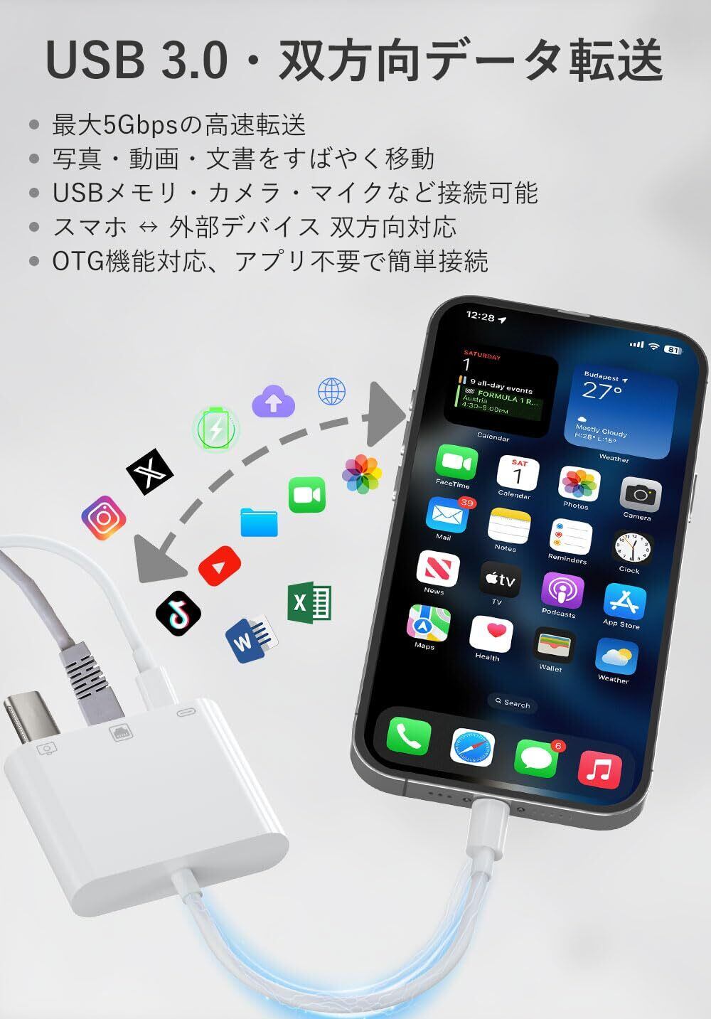 USB-C LAN 有線LANアダプター【3-in-1】RJ45+PD充電+USB 3.0ポート Type-C lan変換アダプター OTG機能 イーサネットアダプタ 遅延なし 設定不要 カメラアダプタ iPhone16/15/iPad/MacBook/Galaxy/AQUOS/Pixel/Switchなどに対応