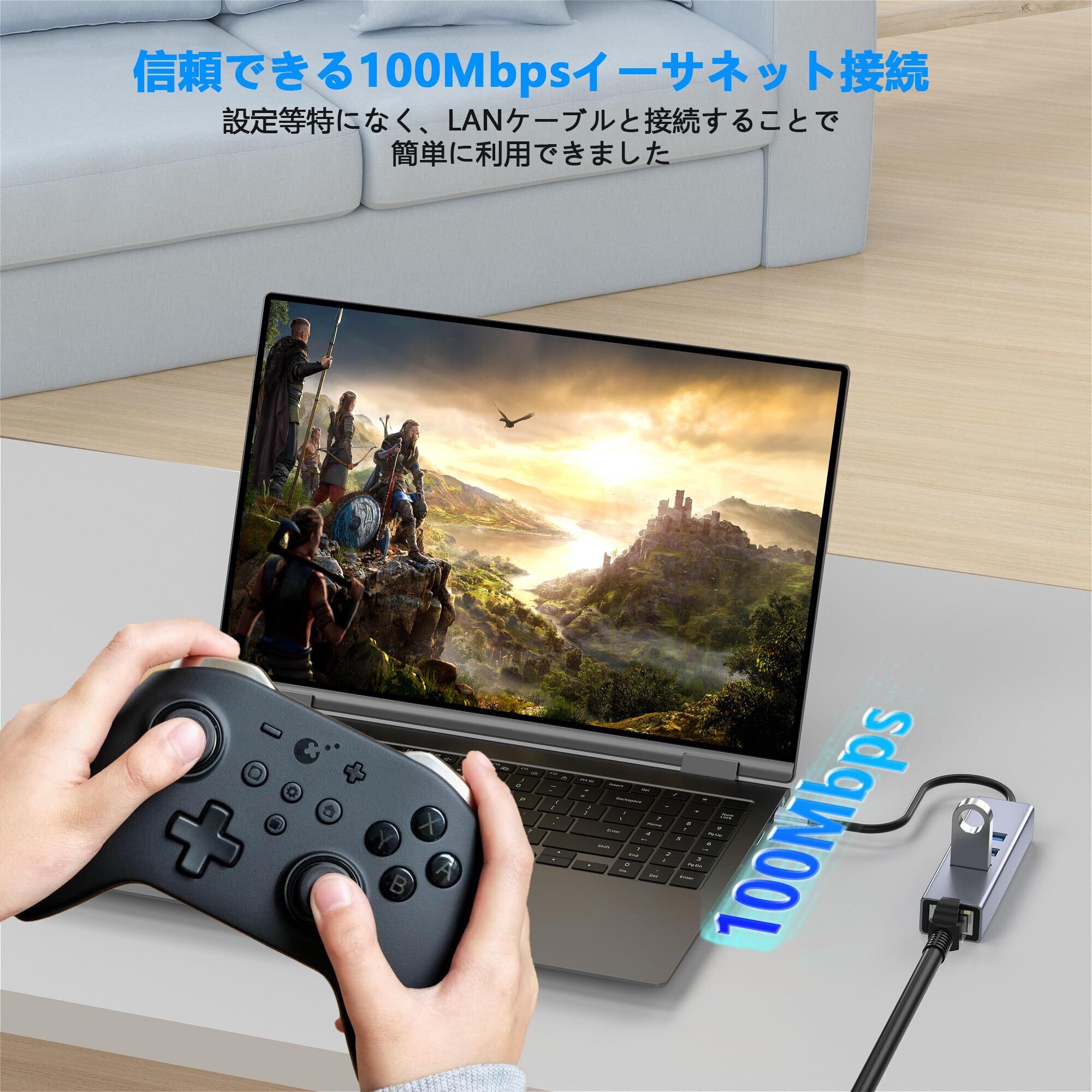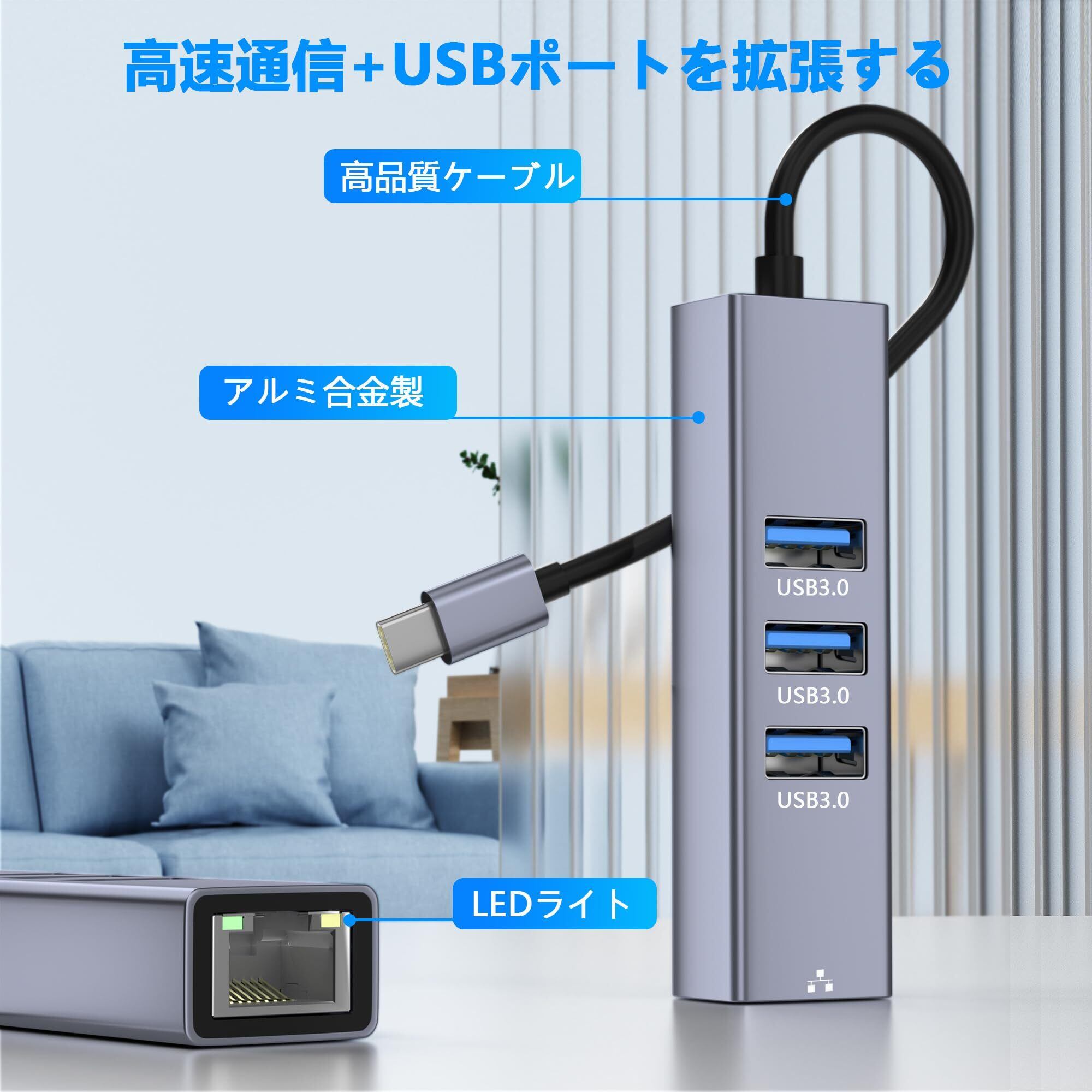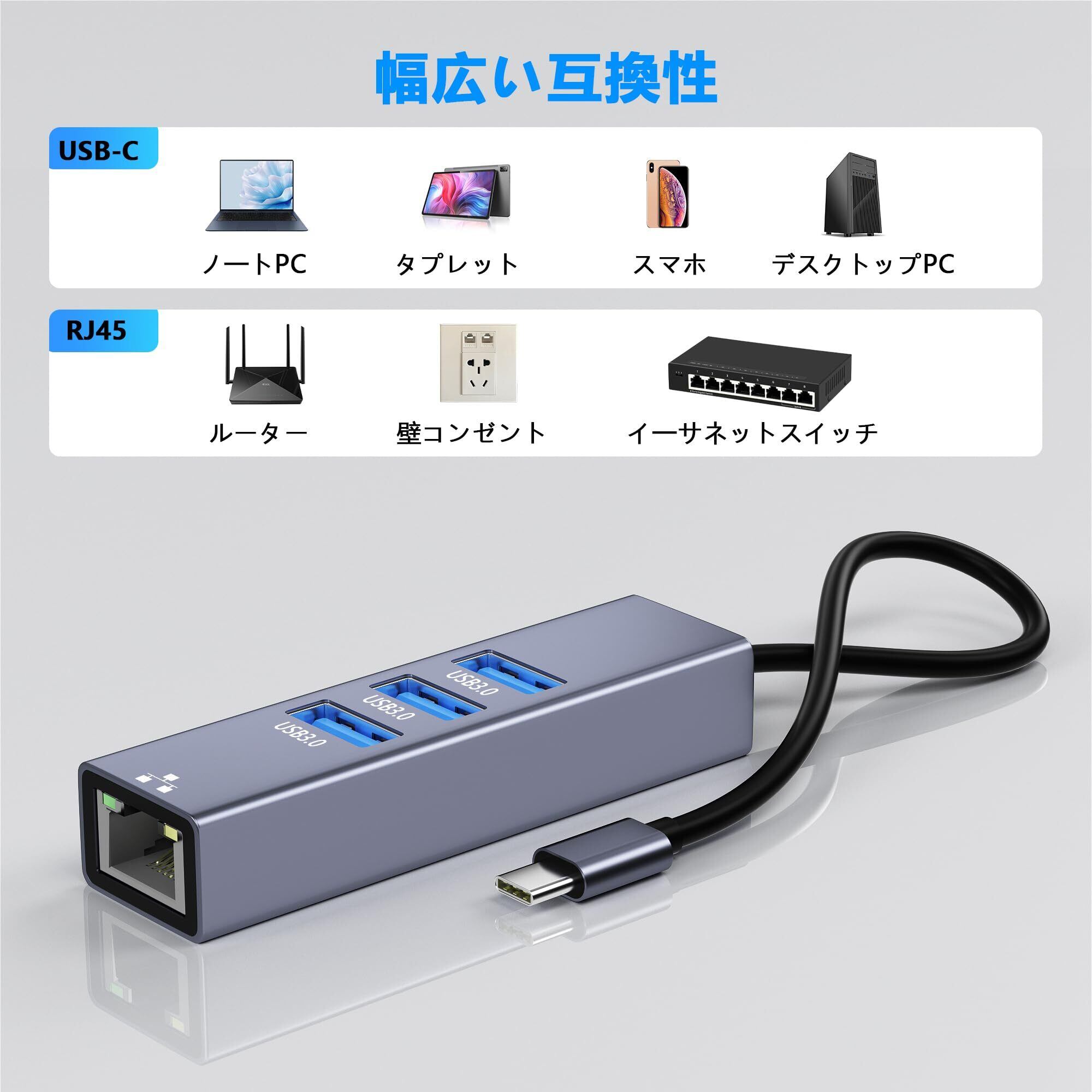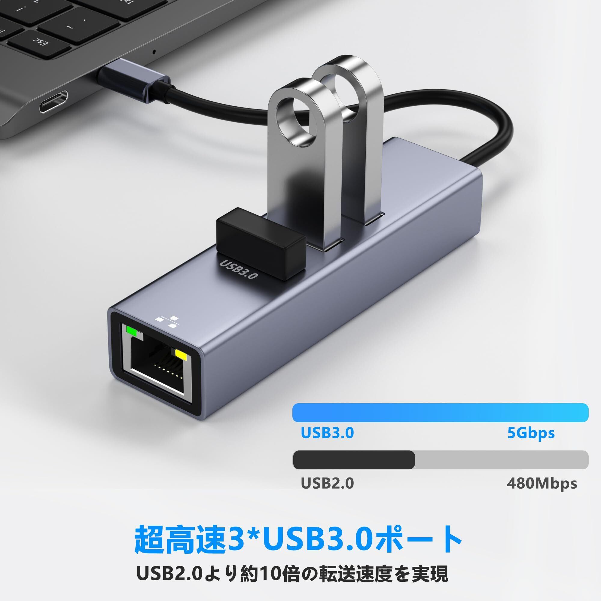 有線LANアダプター 4-IN-1 USB ハブ イーサネットアダプタ USB C LAN変換アダプター【RJ45100Mbps+3つUSB3.0ポート】100Mbps高速 Type-C LANイーサネットコンバータ USB LAN 変換ケーブル USB Hub iPhone 15/16MacBook/iPad/Windows/Android/他のタイプC デバイス対応