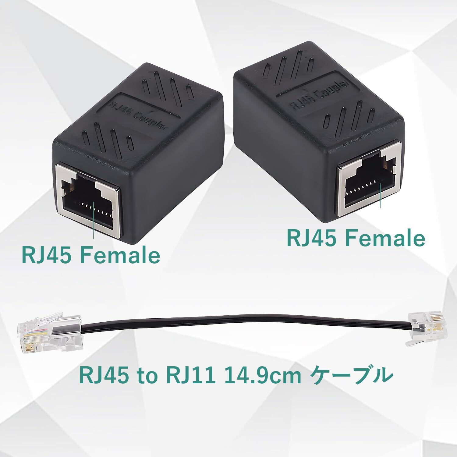 【仕様】ケーブルコンバーター:イーサネットRJ45(8P8C)オスからRJ11(6P4C)オス 長さ:約15cm RJ45LANケーブル用中継コネクタ:両端にRJ45(8P8C)