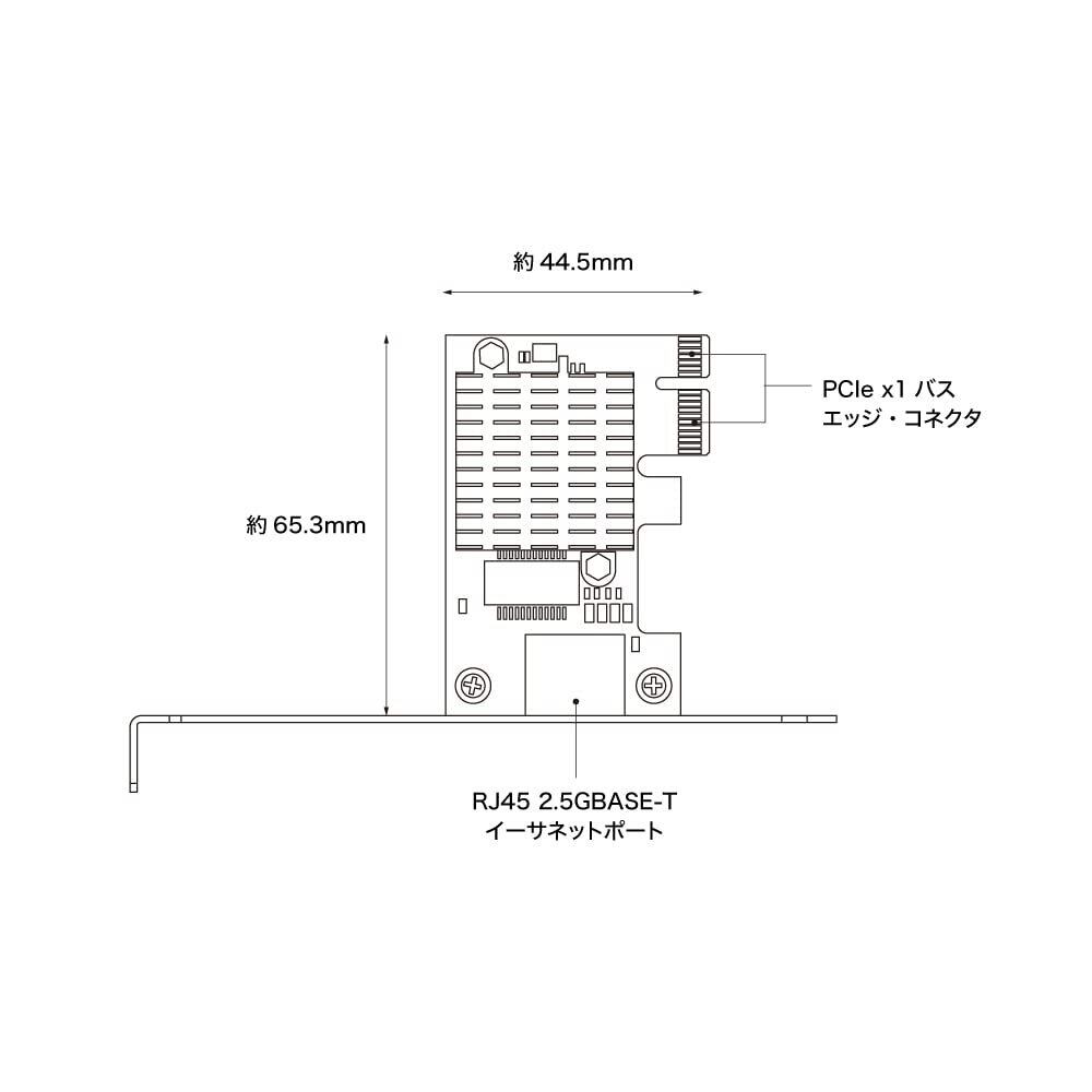 最大2.5Gbpsの高速伝送を実現するPCIeバス対応2.5BASE-T ネットワークカード 第1世代のRTL8125より消費電力を50%削減した第2世代2.5GbEコントローラーRTL8125Bを採用 Windows、Linuxで使用可能 PCIe x1バスに対応 ロープロファイルブラケット同梱