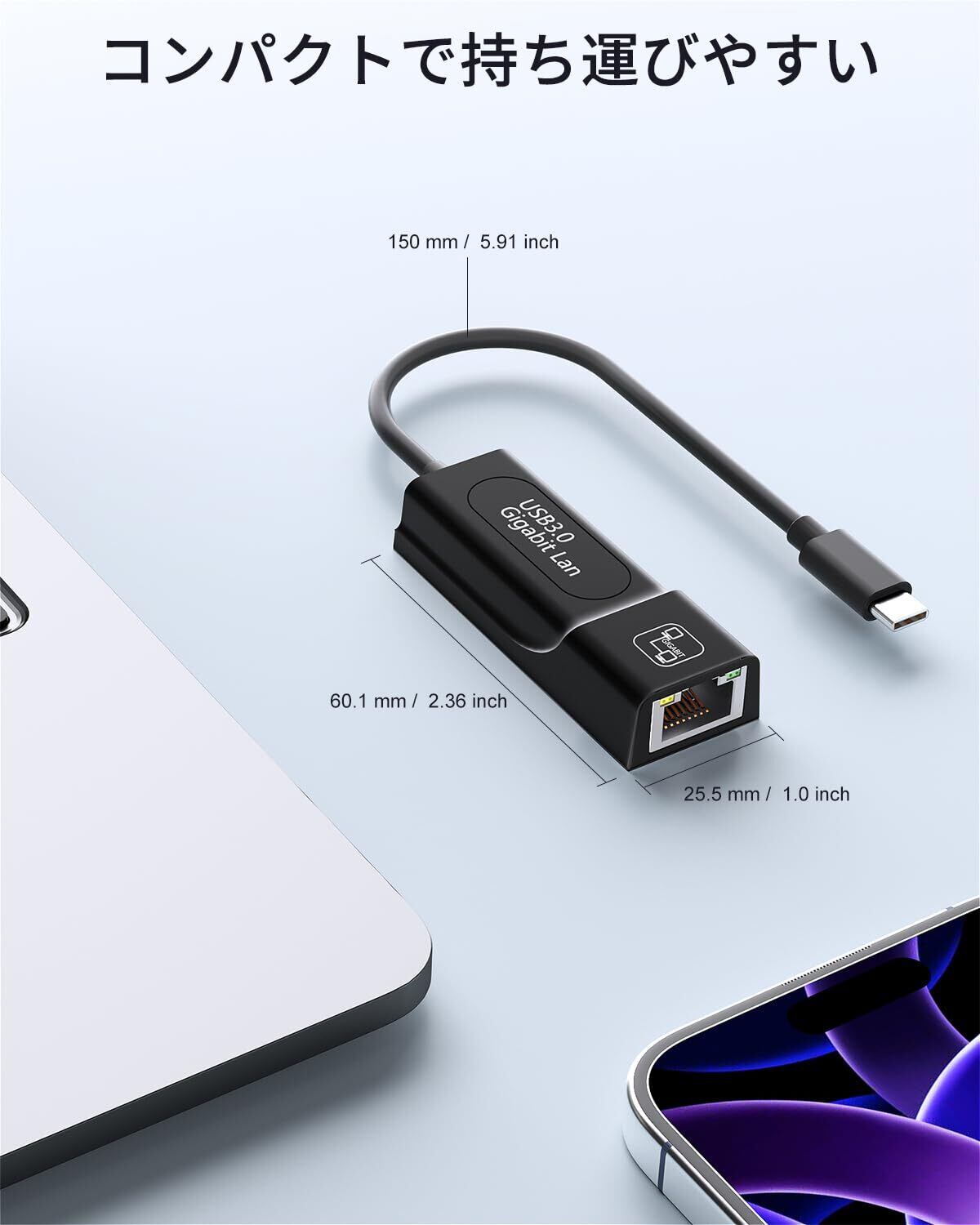 【USB Type C to RJ45 有線LANアダプター】USB-C デバイスと有線ネットワーク間のプラグアンドプレイ接続用に特別に設計されており、ワイヤレス接続が不安定な場合や延長しすぎている場合でも、ギガビット イーサネット接続を提供します。WIFIが不安定や有線接続がないときの悩みを直接的に解決します。