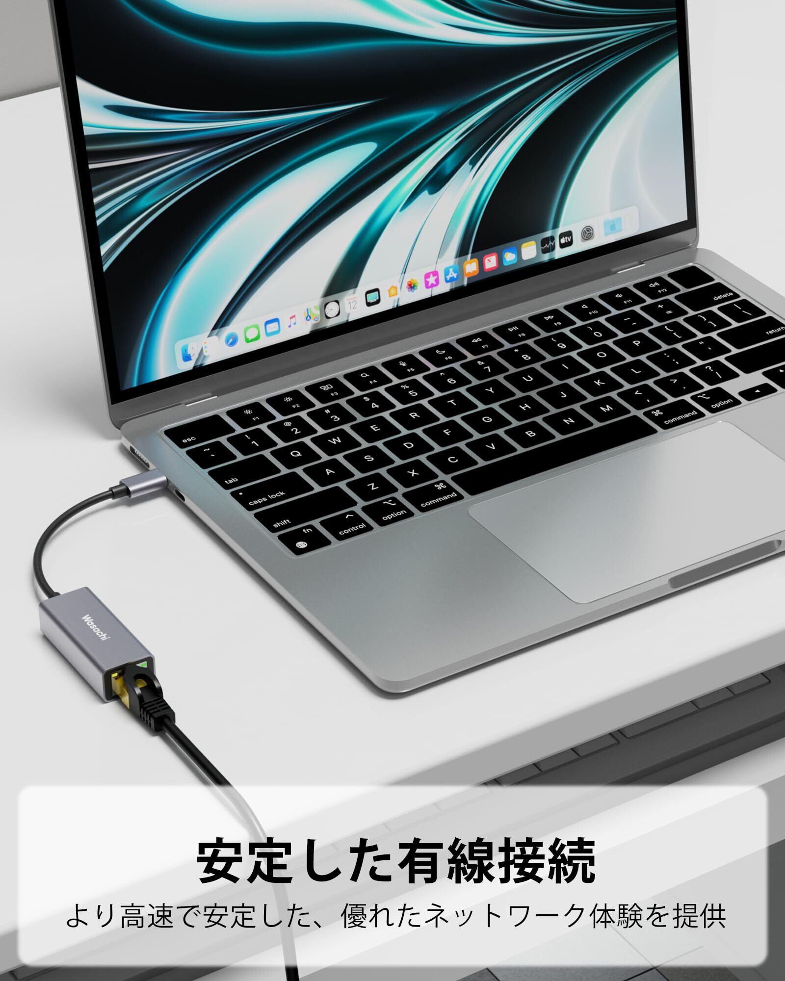 【安定通信でWi-Fi課題解決】USB-C to RJ45 有線LANアダプター。Wi-Fi信号を超える安定性を実現し、在宅勤務・テレワークの重要なビデオ通話、高画質動画ストリーミング、オンラインゲームプレイなど、途切れや遅延が気になるシーンで快適なネットワーク環境を提供します。