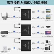 1.【1入力2出力ネットワーク接続】1つのLAN信号を2台のデバイスに同時出力でき、配線制限やポート不足を簡単に解消。干渉が少なく、家庭やオフィスで安定したネットワーク拡張が可能です。