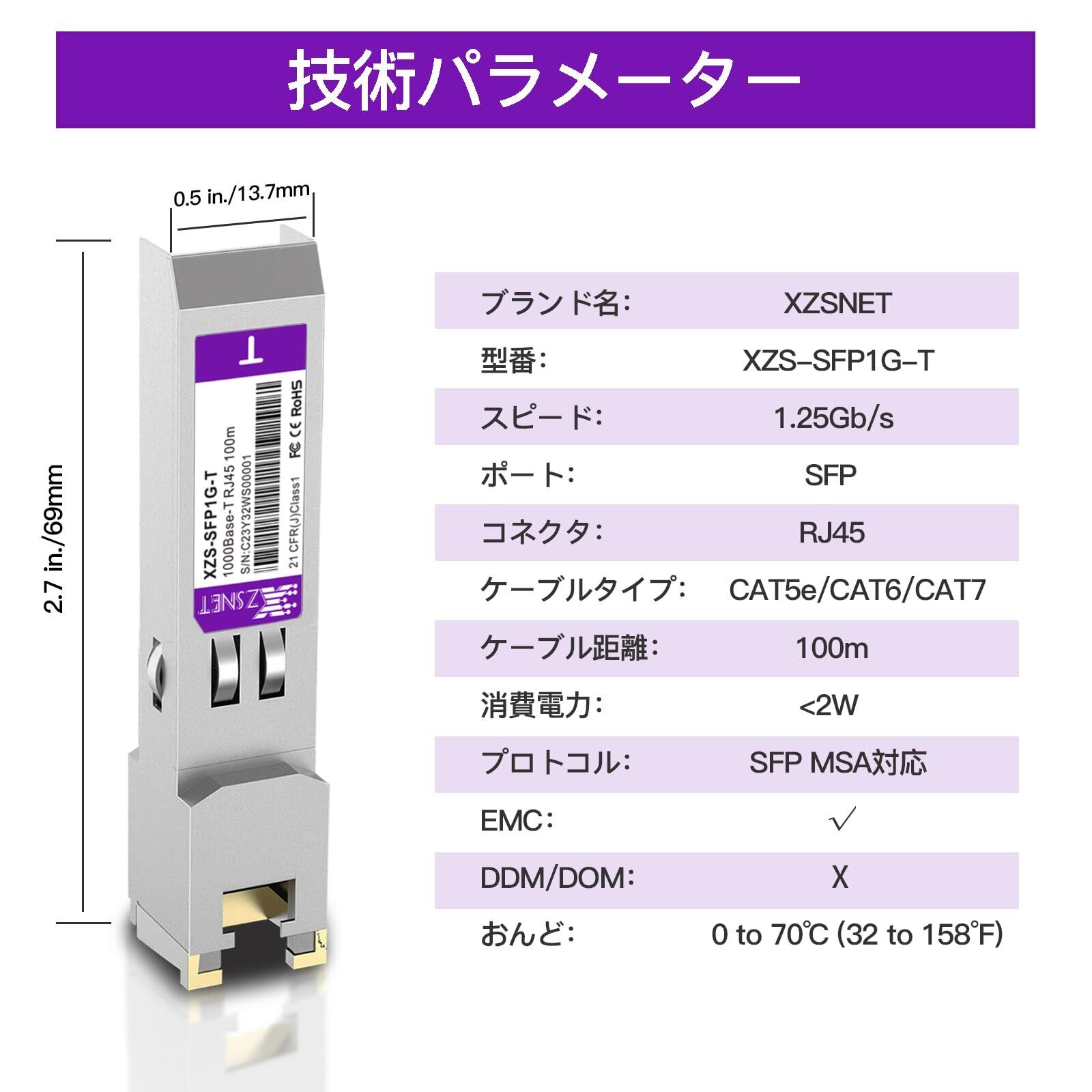 XZSNET 1000Base-T SFPモジュール, 1.25Gb RJ45 SFP光トランシーバ, 1.25Gカッパー Ethernet モジュール, Cisco GLC-T/SFP-GE-T, Ubiquiti UniFi UF-RJ45-1G, Mikrotik, Meraki, Netgear, D-Link などに対応 1個入り