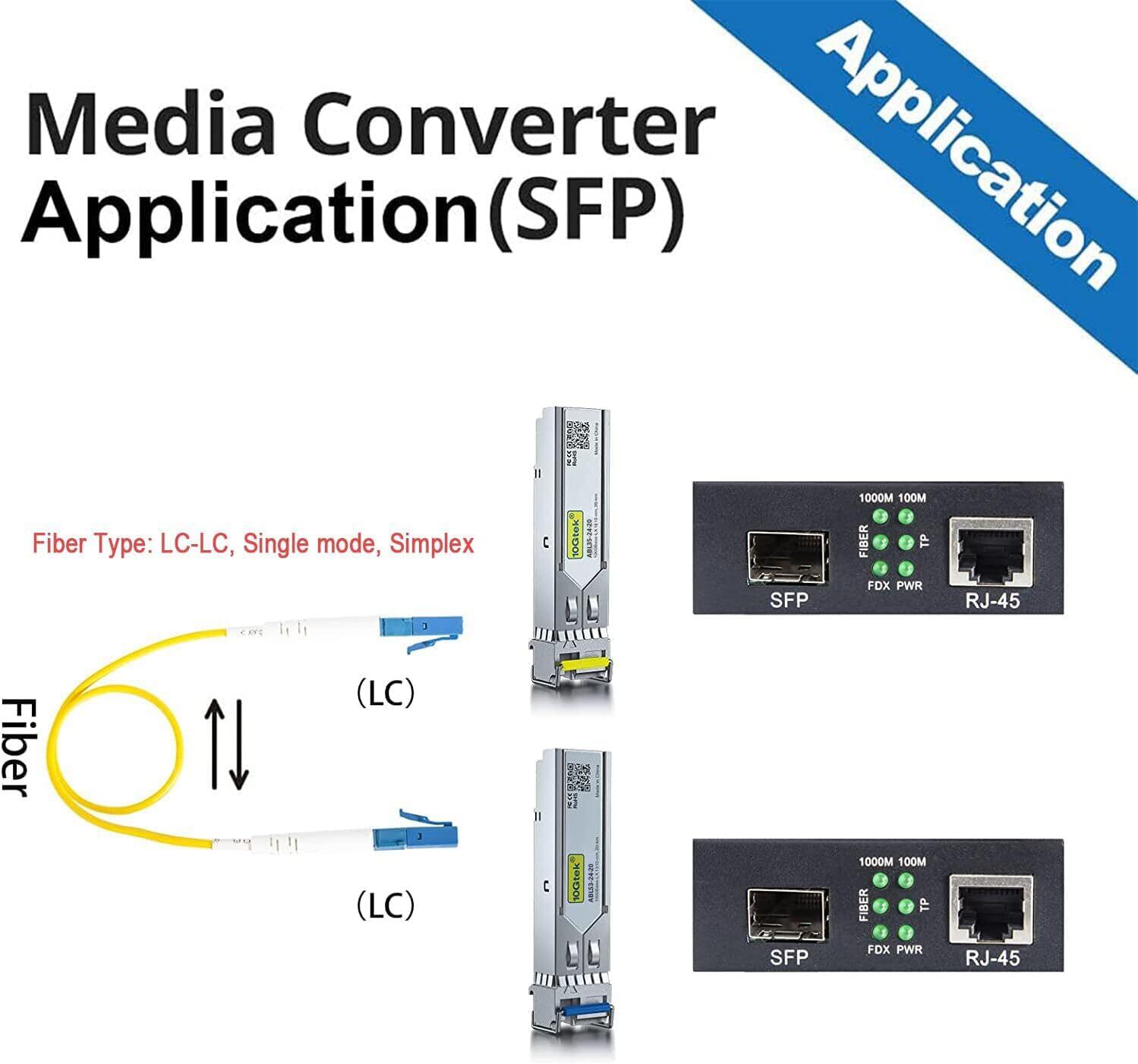10Gtek ギガビット 光メディアコンバーター シングルモード LCファイバー 1.25Gb/s ペア10/100/1000MメディアコンバーターとBiDi 1000Base-LX SFPモジュール セット(1310/1550nm 20km)