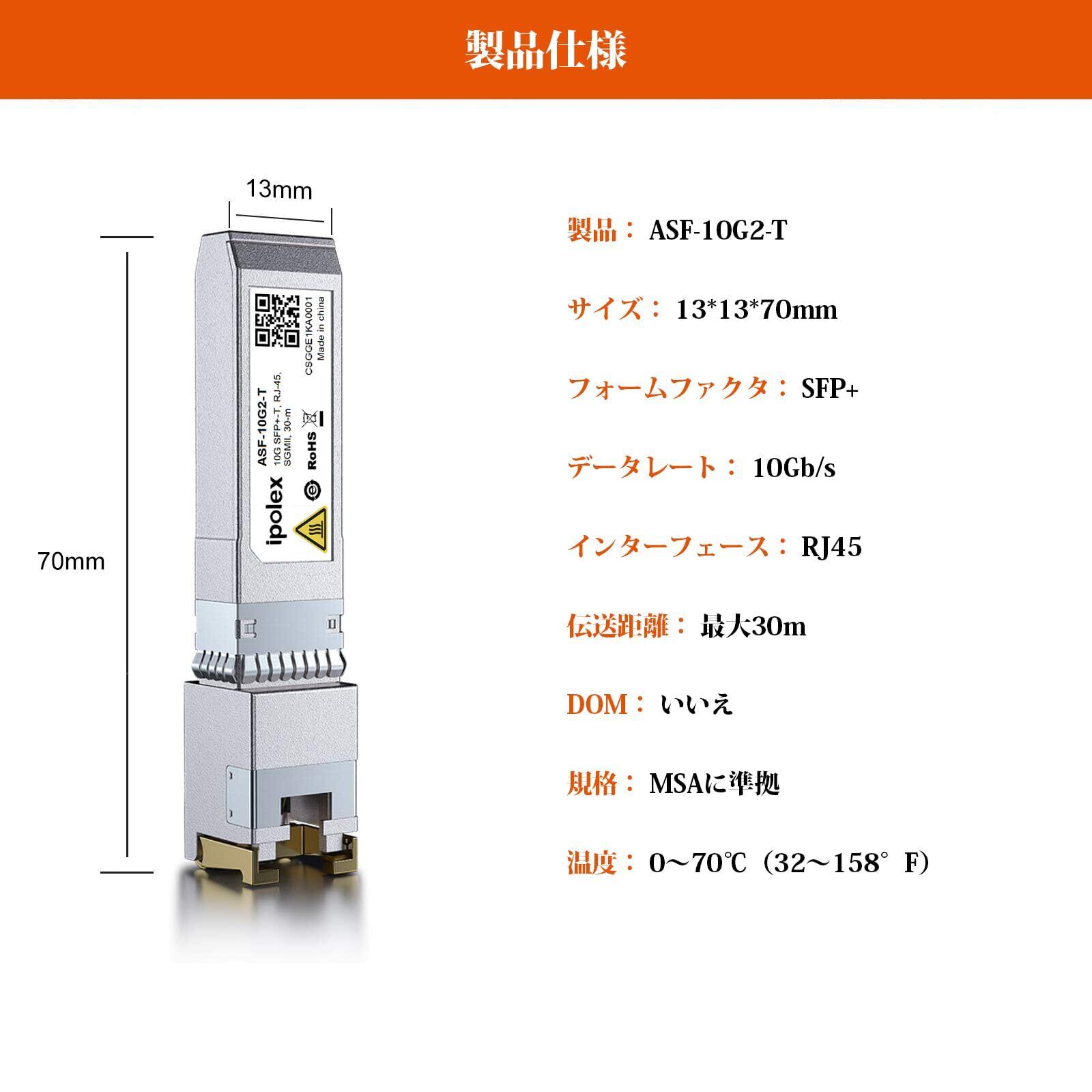ipolex 2個入り 10GBase-T SFP+モジュール 1.25/2.5/5/10G SFP+ RJ45 モジュール Cisco SFP-10G-T-S、Netgear、Ubiquiti、D-Link、Supermicro、TP-Link、Broadcom、Linksys、F5など対応互換 マルチレート 光トランシーバー 最大30m (CAT.6a/ CAT7)