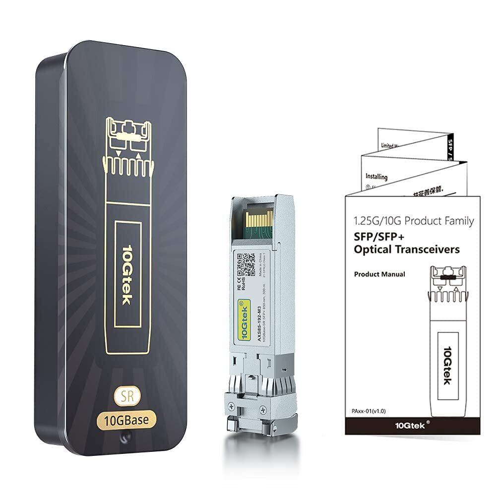 10Gtek 10GBase-SR SFP+モジュール, 10G 850nm MMF, 最大300m, 光トランシーバ, Intel E10GSFPSR 互換