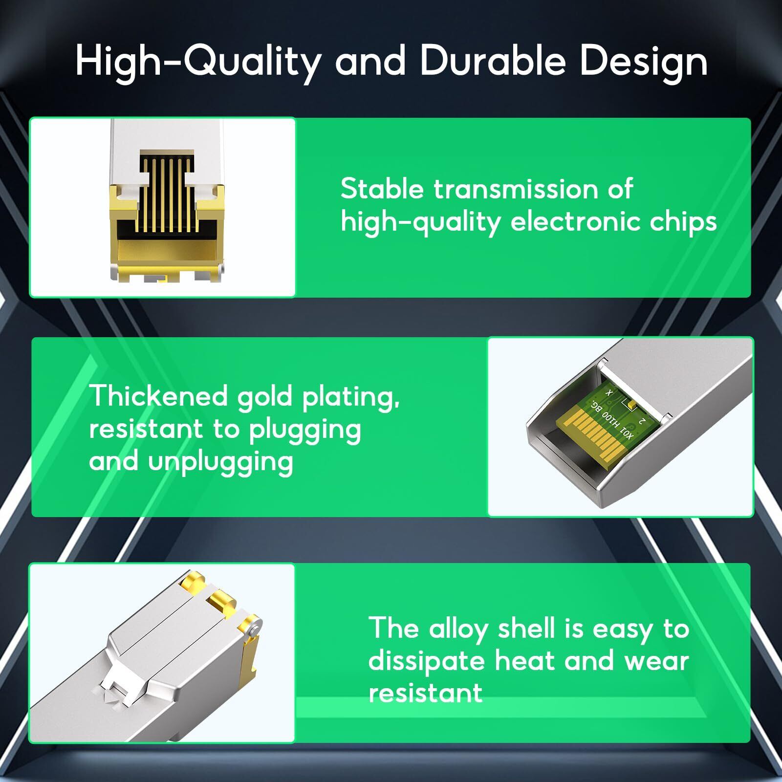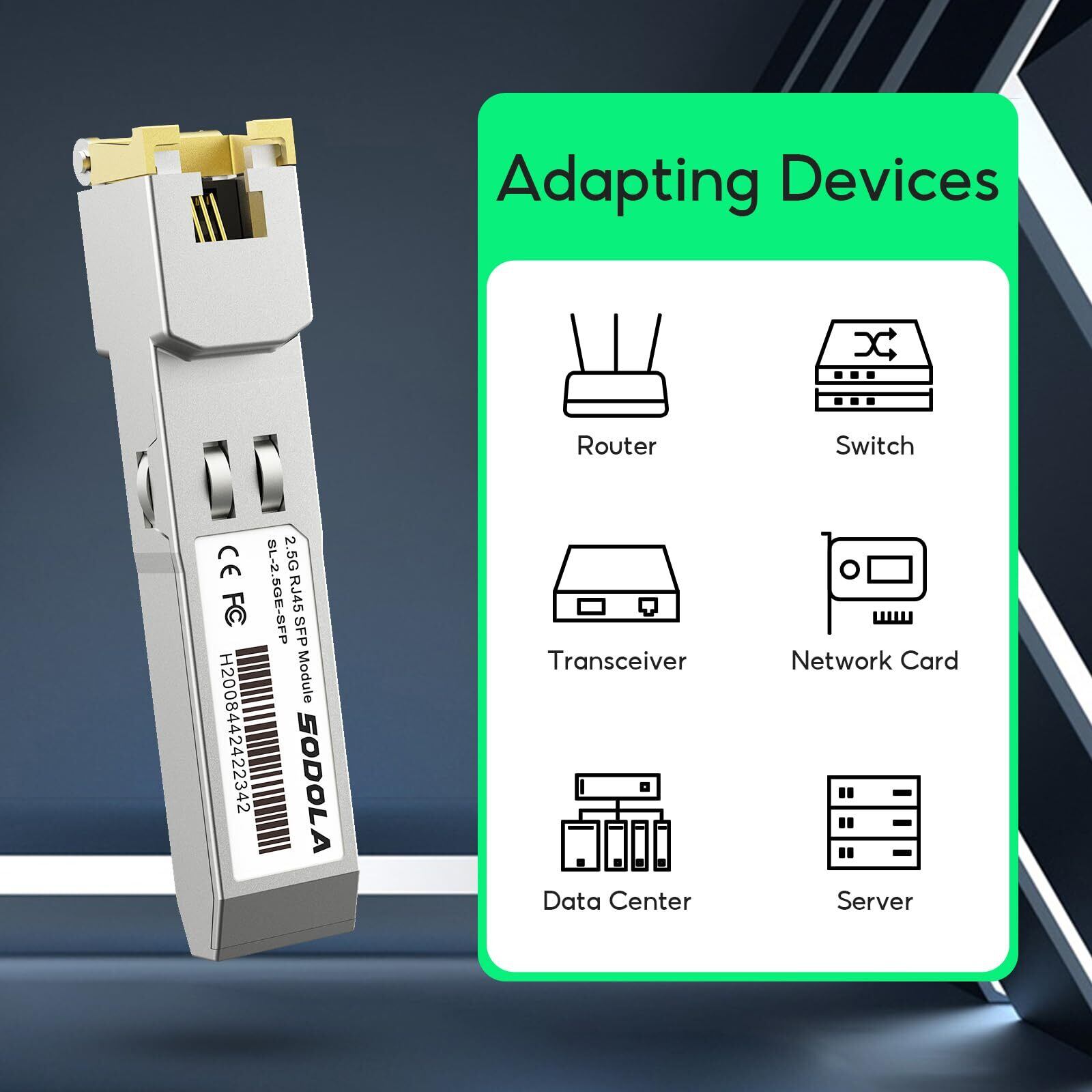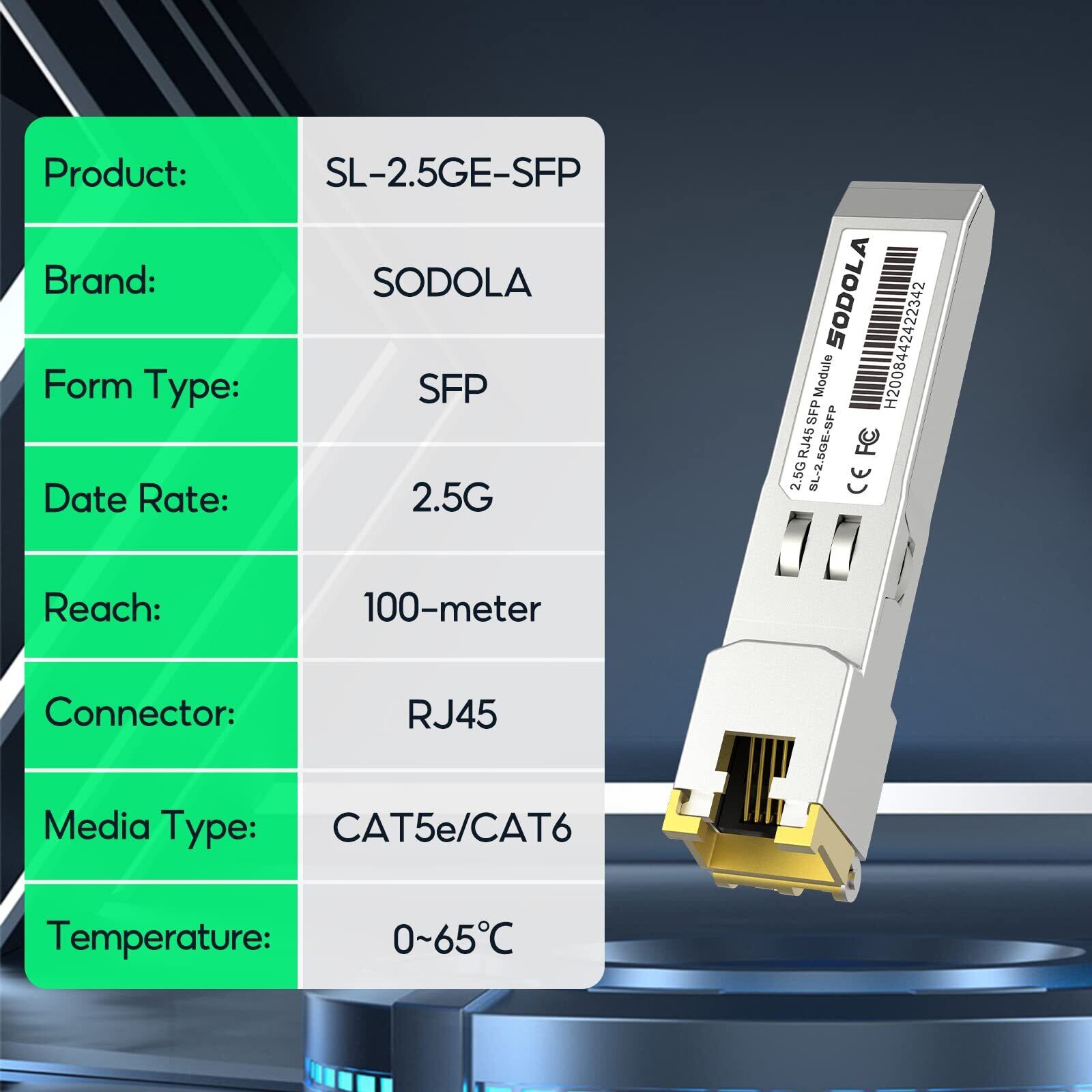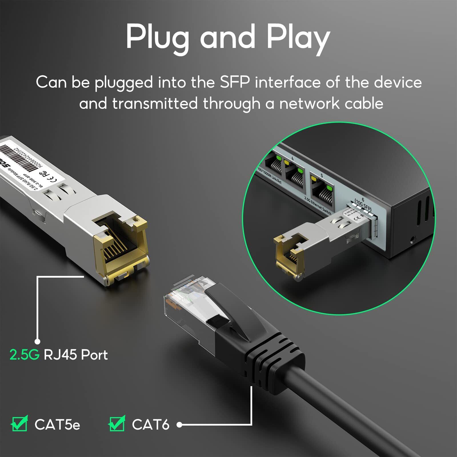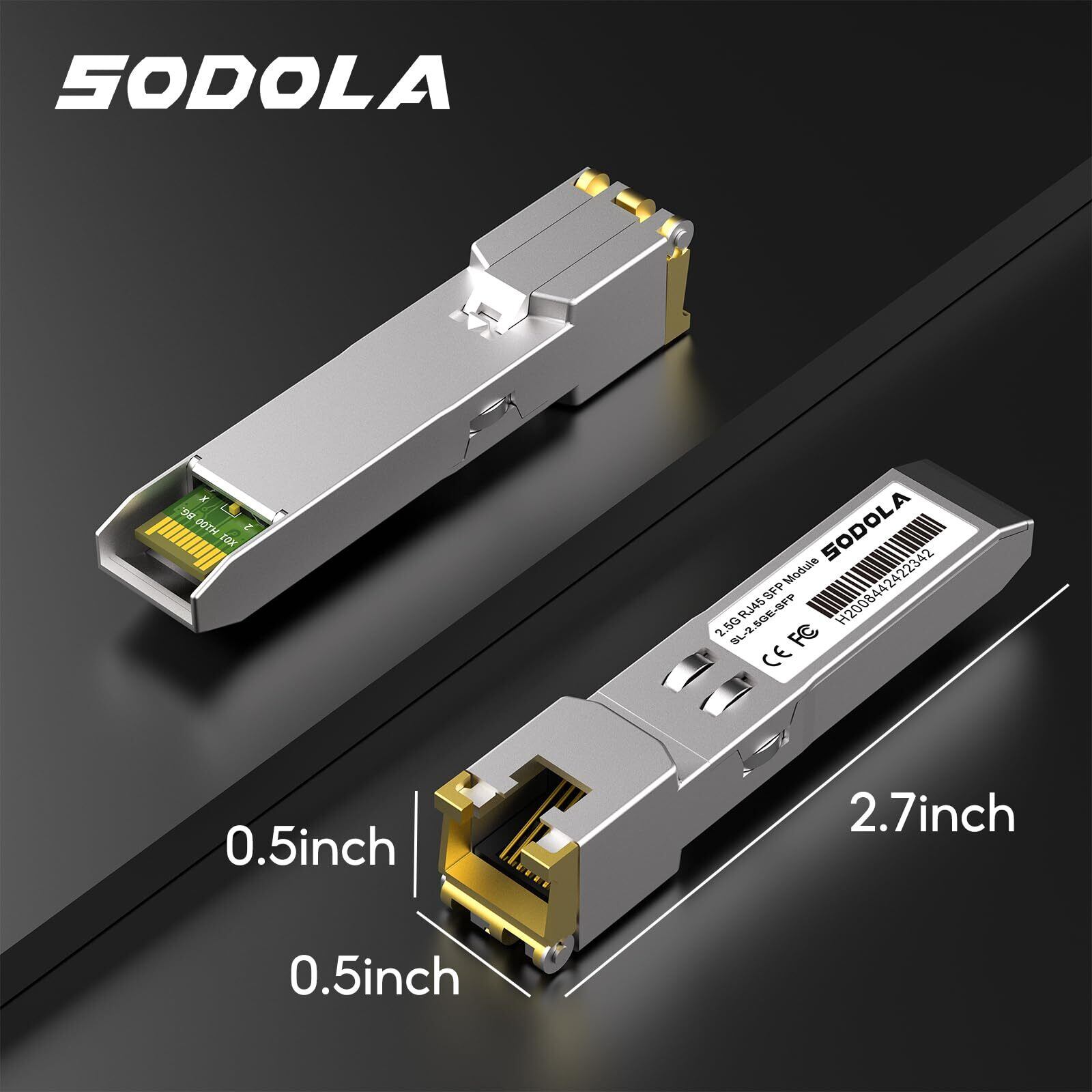 Sodola 2.5GBase-T SFP+モジュール, 2.5Gカッパー, 1/2.5 マルチレート光トランシーバー, TP-Link、Netgear、Ubiquiti UniFi、Mikrotik、D-Linkなど互換 プラグアンドプレイ 最大100m (CAT.6a/ CAT7)