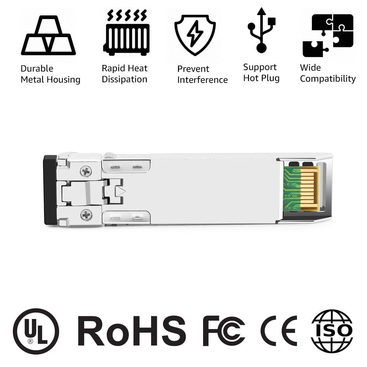 ホットプラグ対応SFP+ MSAおよびRoHS準拠。同じリンク上の10GBASE XENPAK、X2、およびXFPインターフェイスとの光相互運用性