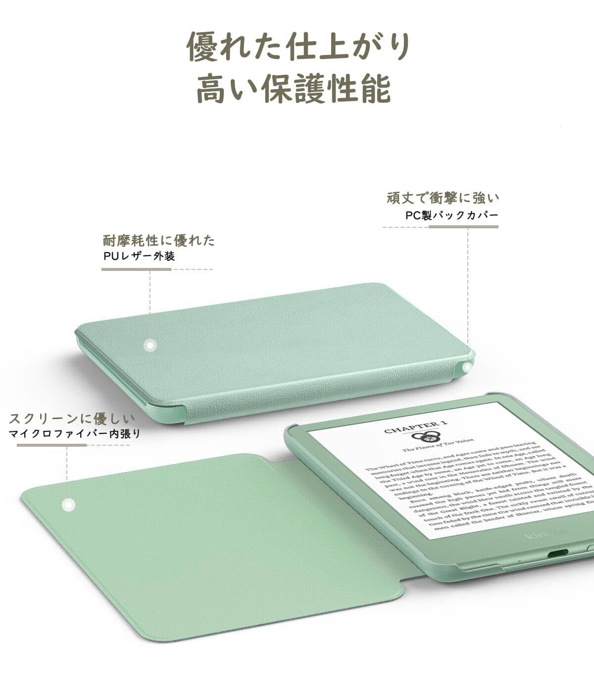 MoKo Kindle 第11世代 2024/2022 6インチ用 ケース Kindle 2024/2022 カバー キンドル第11世代 PC製 軽量 薄型手帳型 耐衝撃 シンプル 傷つき防止 取付簡単 Green