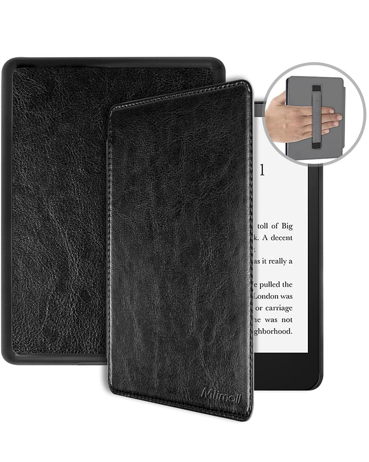 Miimall for Kindle Colorsoft Signature Edition ケース ハンドストラップ付 2024 New Kindle Paperwhite 12世代 7インチ レザーカバー 耐衝撃 落下 傷 汚れ 指紋防止 薄型 おしゃれ オートスリープ Kindle カラー/ペーパーホワイト 12th Gen 用 ブラック