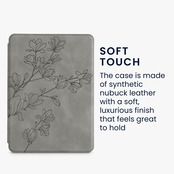 上品なレザールック: このブックケースグレーはエレガントでかつ頑丈なヌバックレザーから作られ、大切な電子書籍リーダーを傷や汚れからしっかりと保護します。通勤通学途中やカフェ、旅行などへの持ち運びで衝撃による故障の心配もいりません!