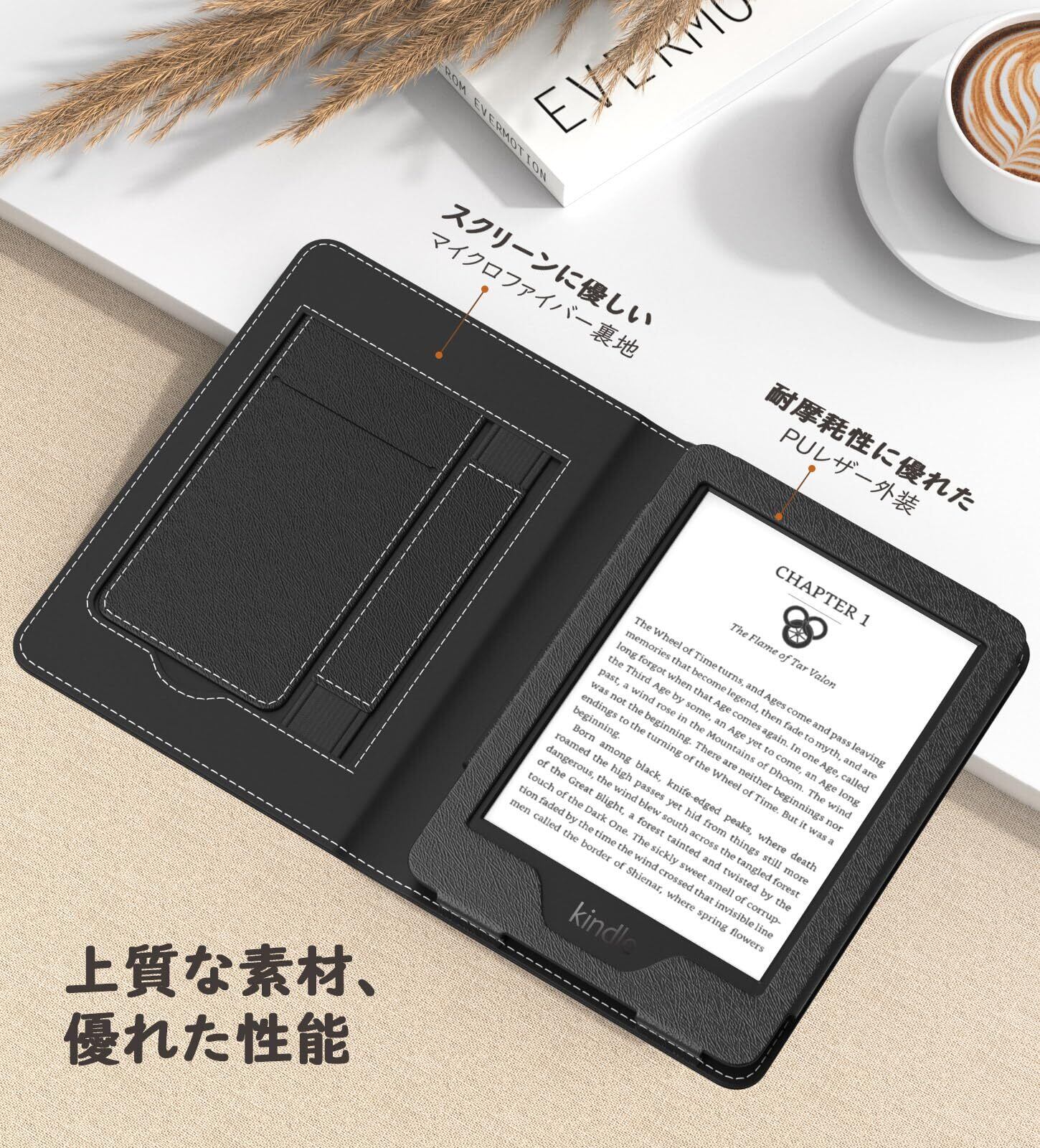 「軽量設計でしっかり保護」上質なPUレザーを使用した軽量設計より、上品さで見栄えながら手軽に持ち運びます。内部は傷がつきにくいマイクロファイバー素材を採用しており、大切なKindleを優しく守ってくれる軽さと保護性能を両立させたデザインに仕上がっております。