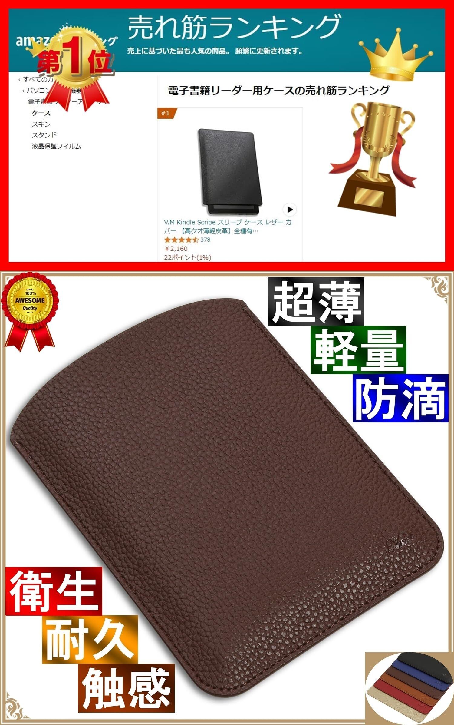 V.M Kindle Oasis カバー ケース レザー スリーブ 【高クオ薄軽皮革】全種有 Paperwhite/Scribe キンドル オアシス 軽量 薄型 第11世代 10世代 9世代 2021 2019 2018 純正 Kindleカバー Kobo コボ 用 可愛い ダーク ブラウン Kindle Oasis 濃茶