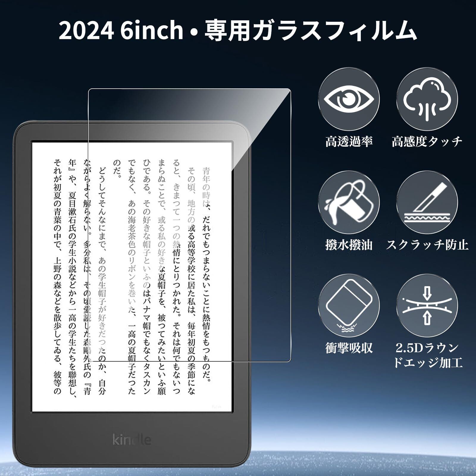 【2枚セッ】For NEW Kindle 第12世代 2024年発売 6インチ フィルム Mosasa NEW Kindle 第12世代 2024年発売 6インチ ガラスフィルム 衝撃吸収 9H硬度 飛散防止 2.5Dラウンドエッジ 自動吸着 気泡ゼロ 高透過率 高感度