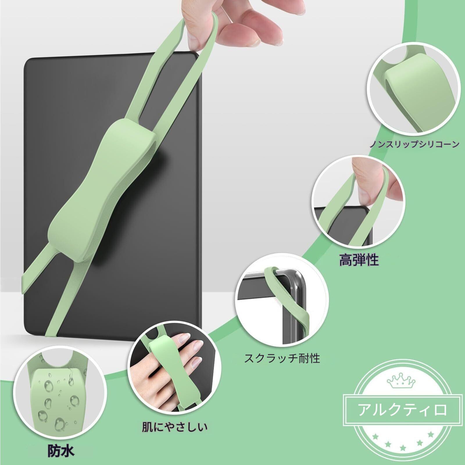 【シリコン製】Kindleタブレット用 快適ハンドストラップ - ベッドでの読書に最適 4.7~8インチ対応 手疲れ軽減 落下防止 握りやすい 調節可能 洗える(電子書籍リーダー/スマホ対応)