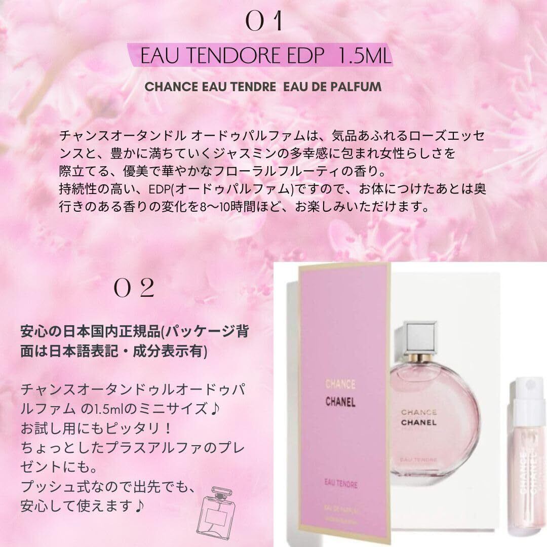 ️【セット内容】CHANEL女性向け香水人気NO.1の香り、CHANEL チャンス オータンドゥル。香りの持続性がオードトワレより高い、 オードゥパルファムの1.5mlサイズ(指先程度のミニサイズ)、 リュクスなアトマイザー、CHANELビューティ正規巾着ポーチ(白)をラッピング済みでお届けします。さらに、CHANELショッパー、CHANELがセットになっておりますので、すぐにプレゼントとしてお渡しいただけます。