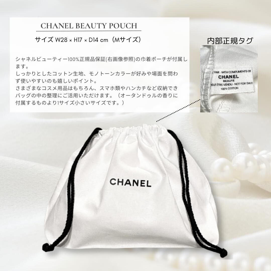 ️【正規CHANEL巾着袋付き】シャネルビューティー100%正規品(右画像参照)の巾着ポーチが付属します。 しっかりとしたコットン生地、モノトーンカラーが好みや場面を問わ ず使いやすいのも嬉しいポイント。 さまざまなコスメ用品はもちろん、長財布とスマホ類や、お弁当箱まで余裕で入るサイズ感ですので、バッグの中の整理にも大活躍!