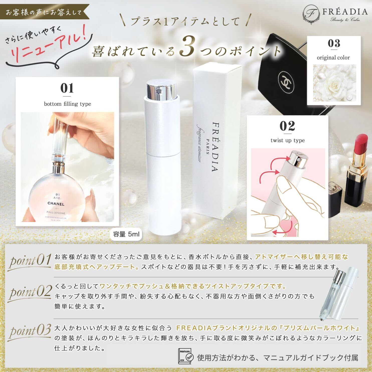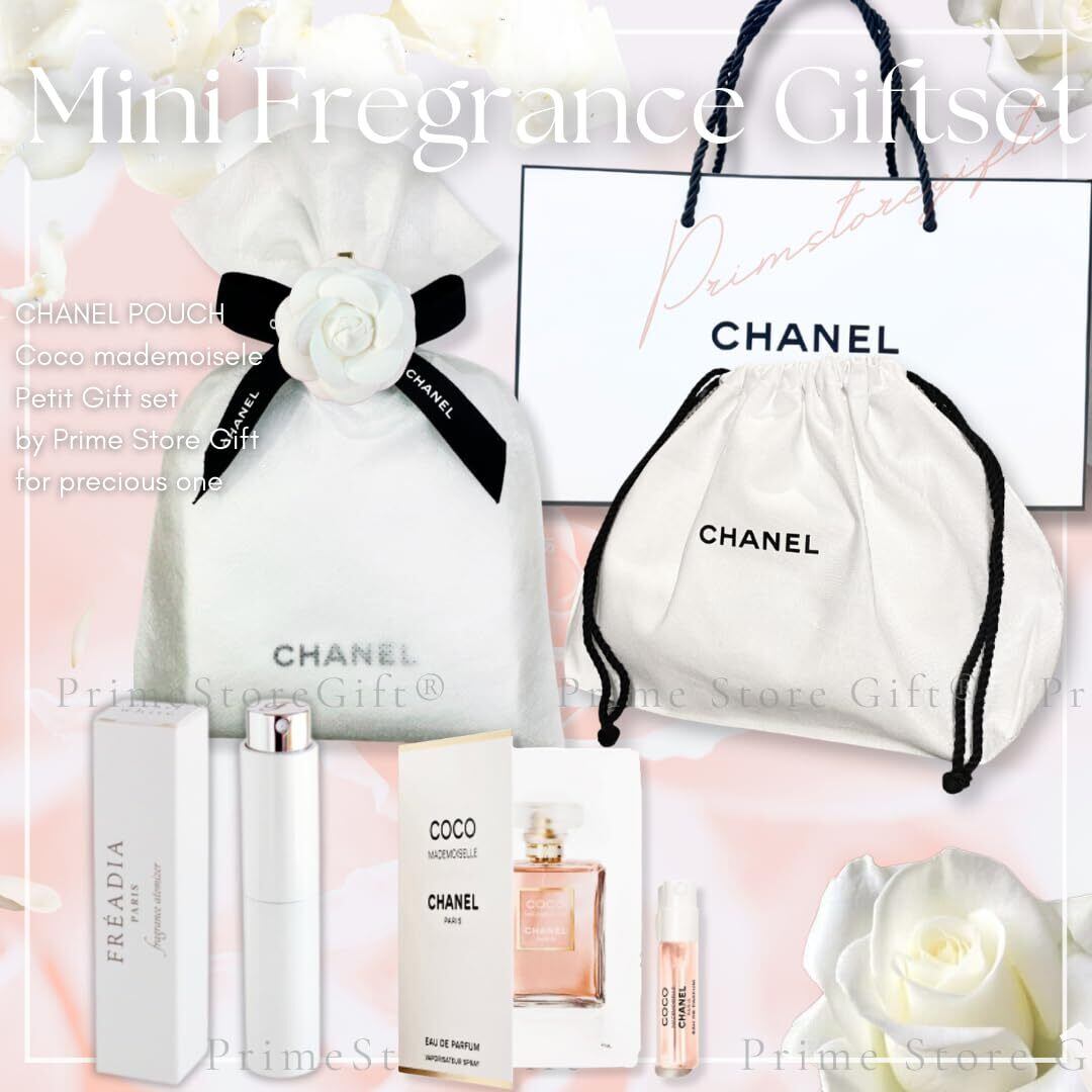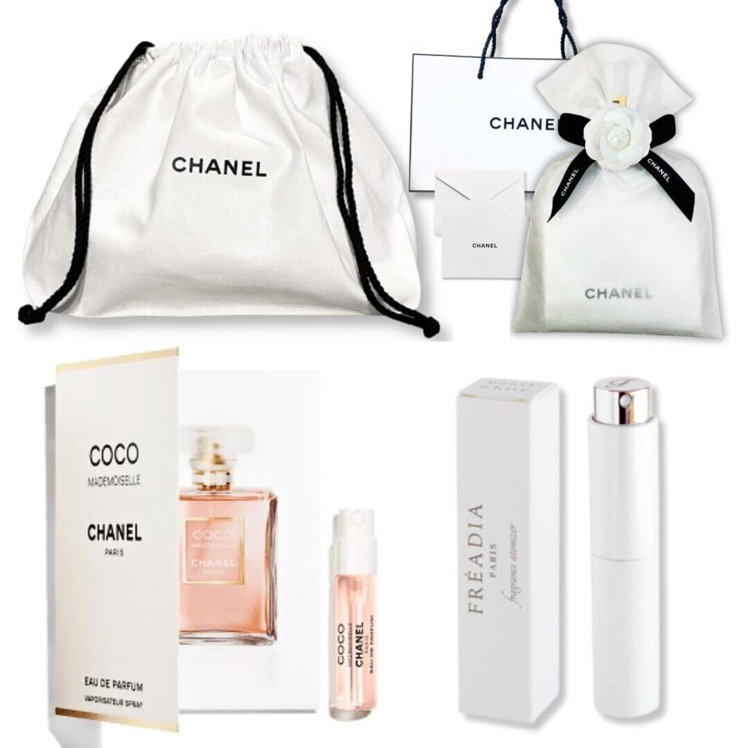 【セット内容】CHANELのロングセラーの香り ココマドモアゼル 。本ギフトセットは、持続性がオードトワレより高い、ココマドモアゼル オードゥパルファム(EDP)の1.5mlサイズ(指先程度のミニサイズ)、FREADIA Luxuryアトマイザー、CHANELビューティ正規巾着ポーチ(白)をラッピング済みでお届けします。さらに、CHANELショッパー、メッセージカードがセットになっておりますので、すぐにプレゼントとしてお渡しいただけます