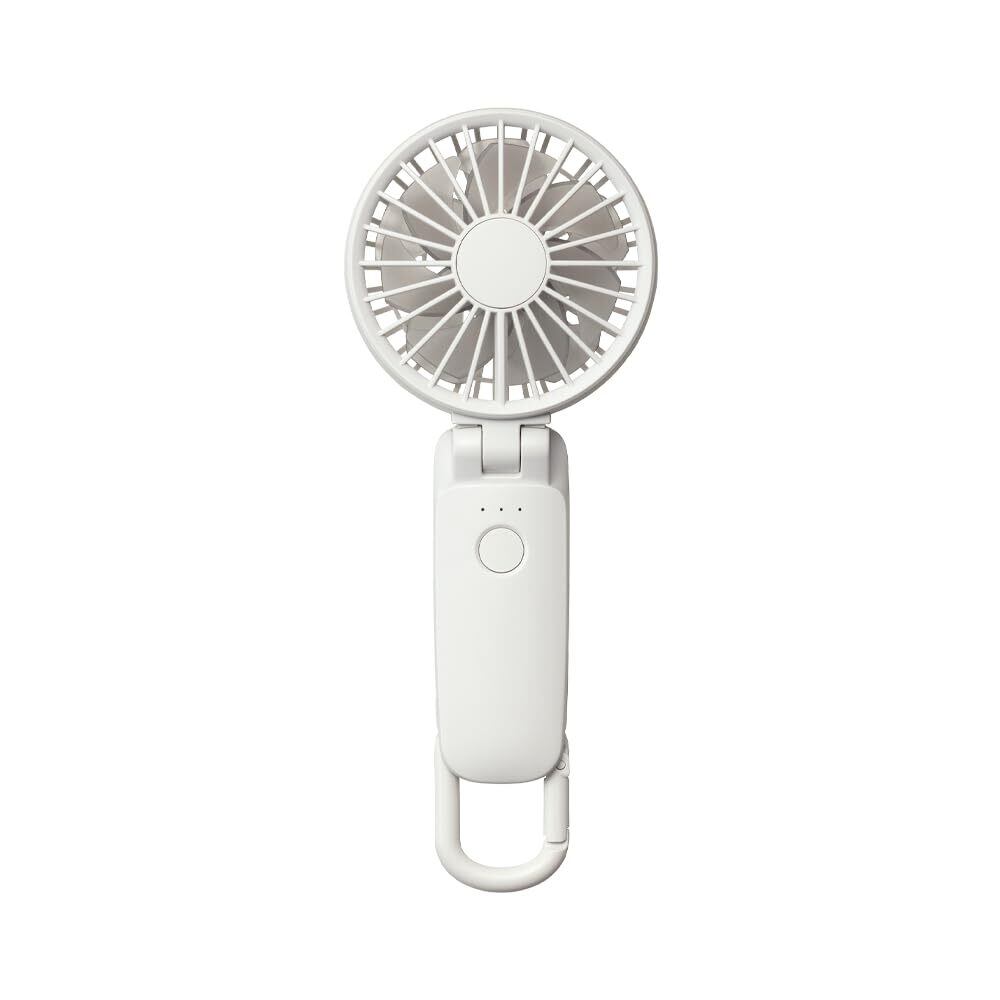 卓上扇風機やハンズフリーとしても使用可能。用途広がるネックストラップ、カラビナ付き。