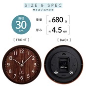 「アイリスプラザ 掛け時計」は、ナチュラルな木目調デザインが特長で、どんなインテリアにも優しく溶け込みます。直径30cmの大きさで、リビングや寝室、キッチンなど、あらゆる空間にふさわしい大人なスタイルを提供します。