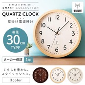 アイリスプラザ 掛け時計 電波時計 ナチュラル 直径30cm 文字盤あり 電波受信していつでも正確な時間を刻む 軽量680g 薄型厚み4.5cm 秒針は一秒一秒「チクタク」と進むステップムーブメントタイプ 一人暮らし シンプルデザイン 秒針 メーカー1年付き PWCRR-30-M