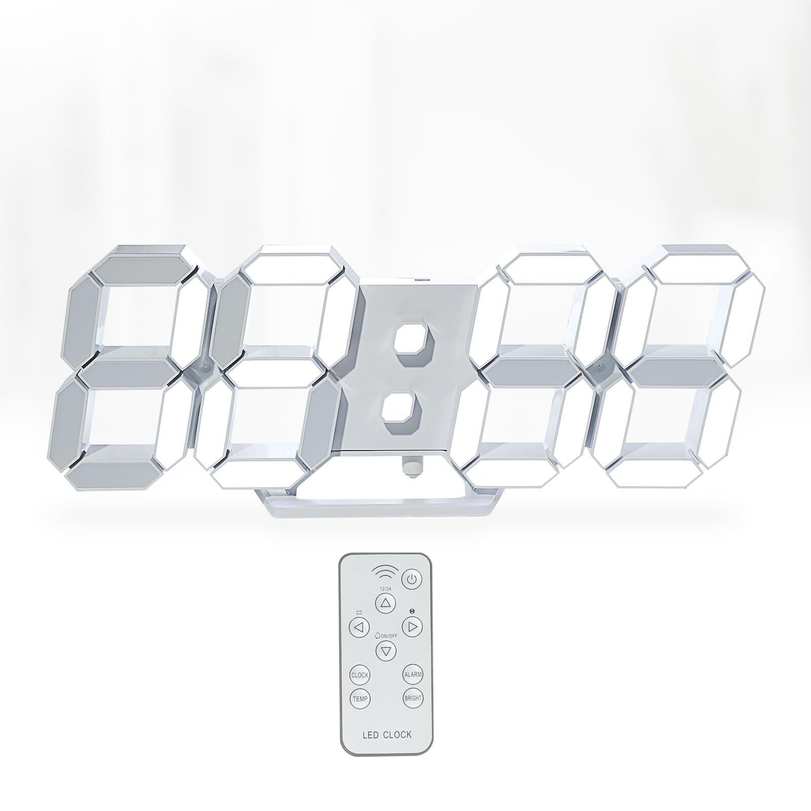 KOSUMOSU デジタル時計 LED 壁掛け 3D LED CLOCK 置き時計 明るさ自動感応 目覚まし時計 10インチリモコン付きナイトランプ年/月/日温度表示白色のキッチン時計(ACアダプター付属無し)
