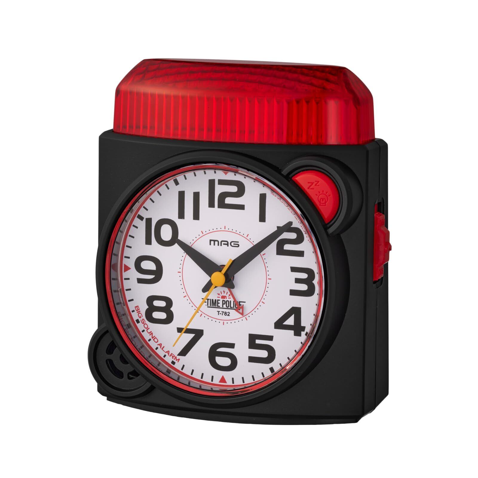 MAG(マグ) 目覚まし時計 置き時計 アナログ 大音量 うるさい サイレン パトランプ 光る 起こす 小学生 子供 プレゼント 静音 連続秒針 電子音 アラーム スヌーズ ライト ブラック タイムポリス T-782A BK-Z ノア精密
