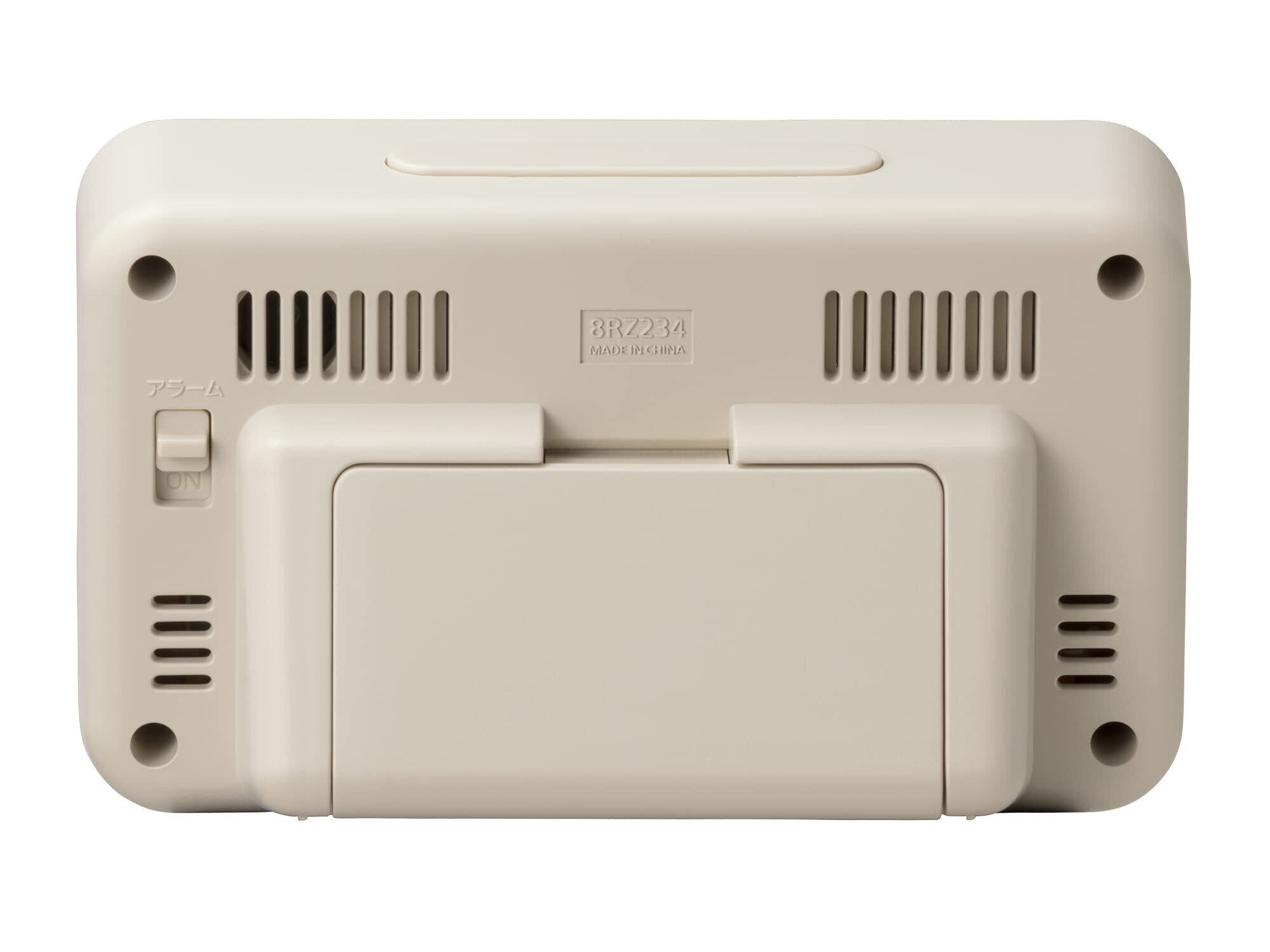 使用電源:単3形x2本(電池別売) ムーブメント:電波時計 電子音アラーム(4段階に変化) 温度計付き(-9.9~50℃) 湿度計付き(20~95%) カレンダー表示(2099年12月31日までプログラム) 最大数字サイズ(タテ)2.6cm