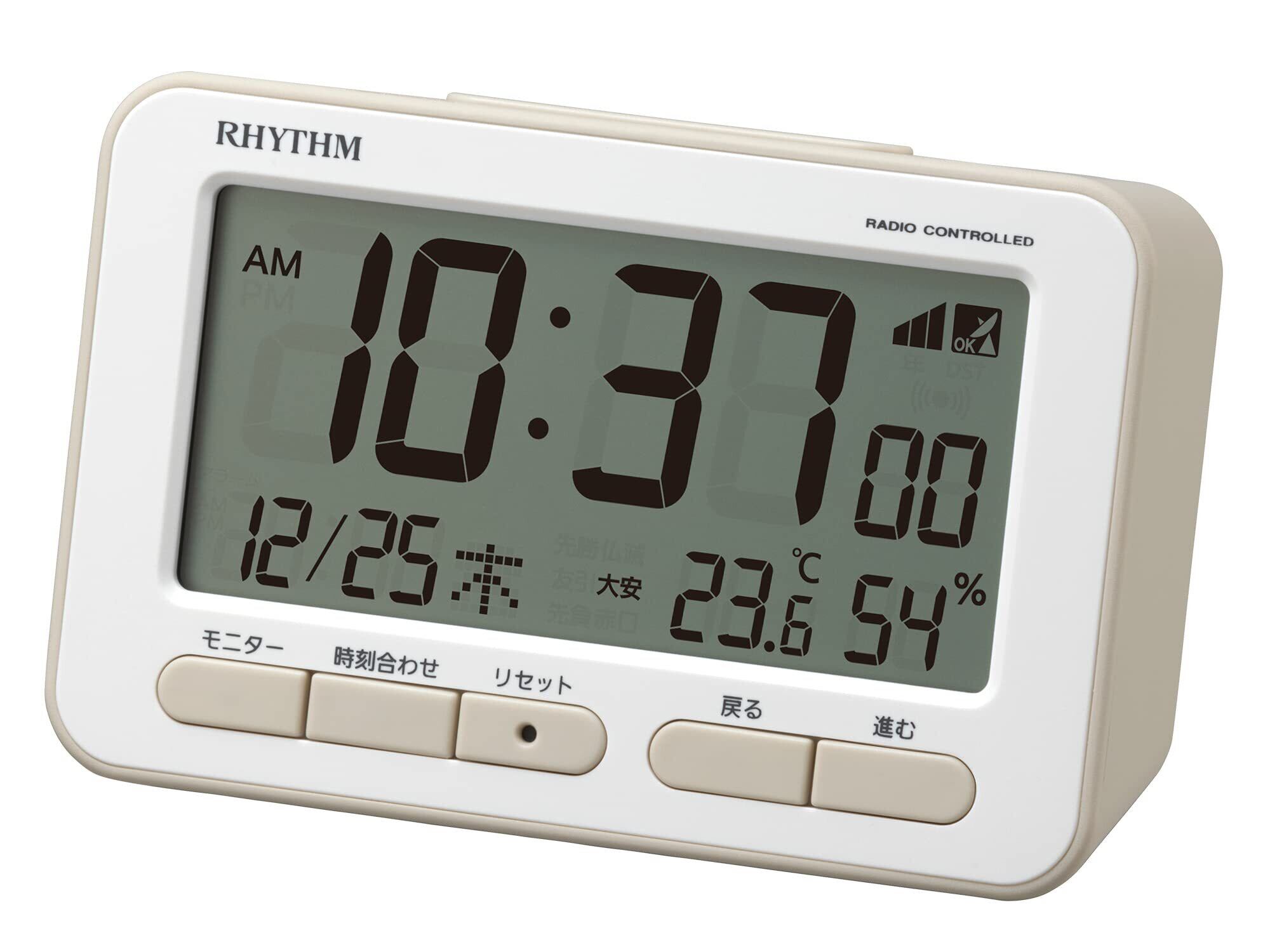 リズム(RHYTHM) 目覚まし時計 電波時計 電子音 アラーム (スヌーズ 付) 温度計 湿度計 カレンダー ベージュ 7.8×12×5.4cm フィットウェーブ D234 8RZ234SR38