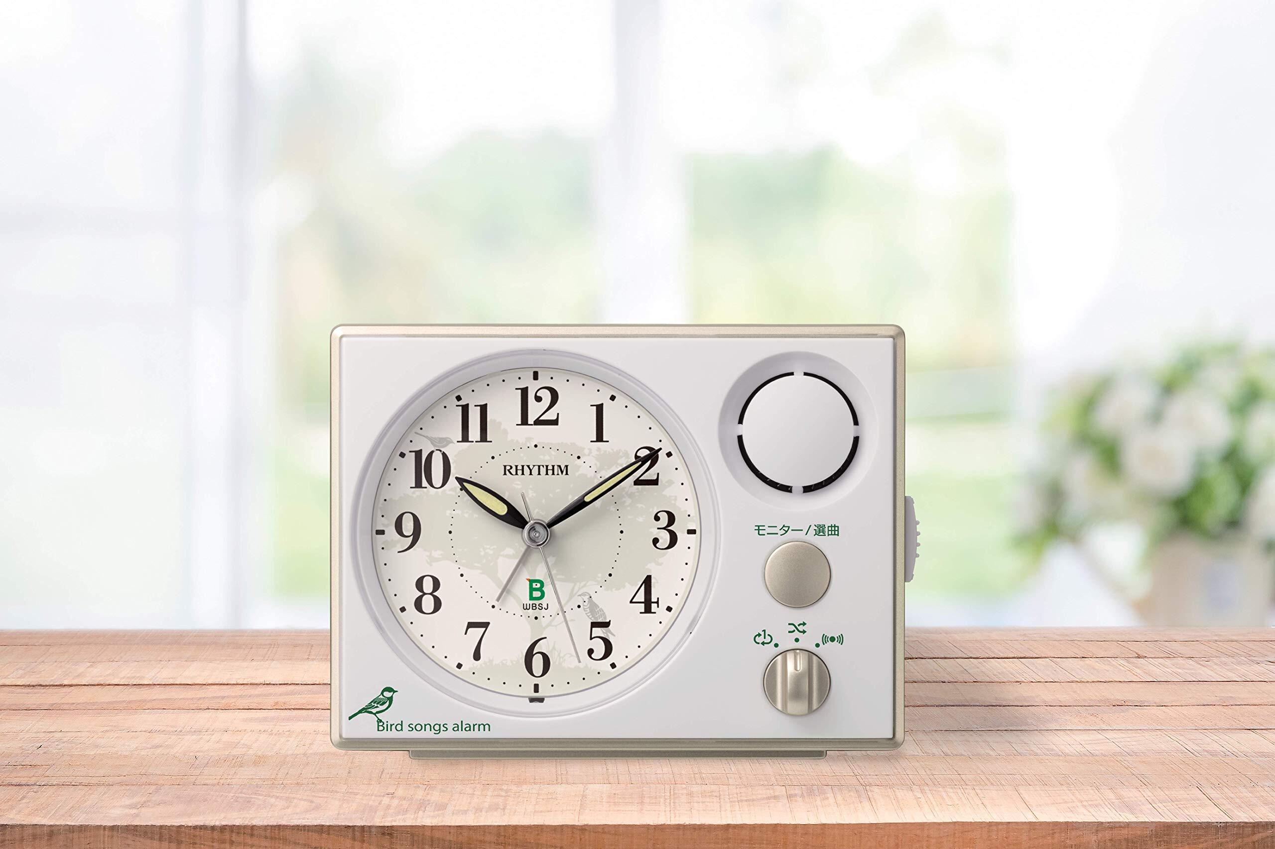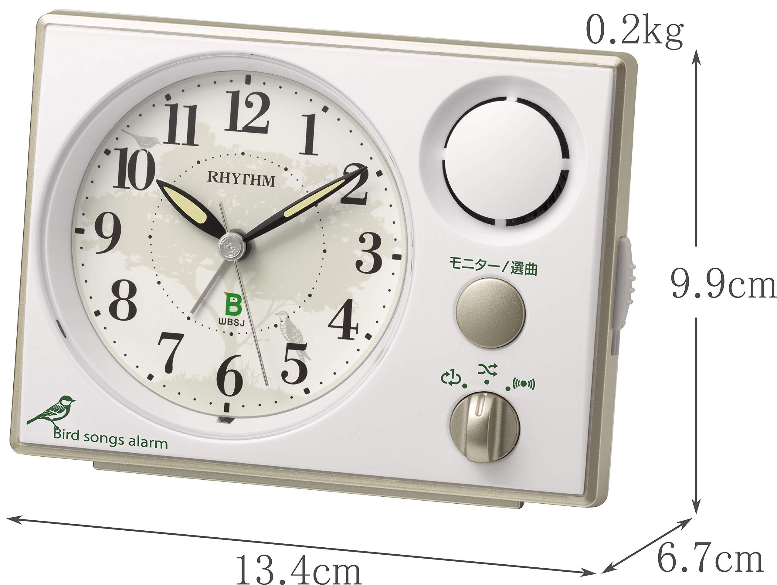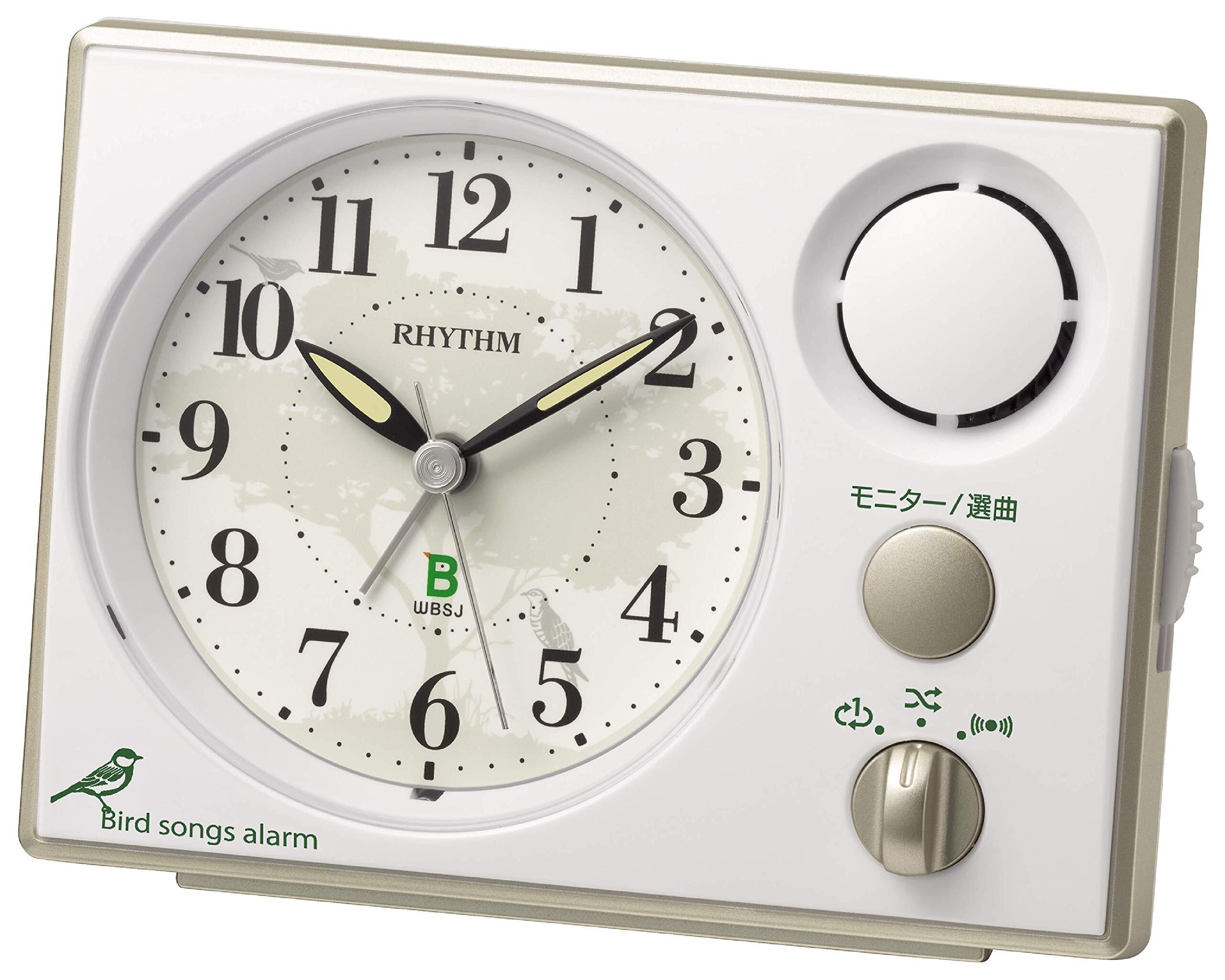 リズム(RHYTHM) 目覚まし時計 日本野鳥の会 共同開発 【鳥の声アラーム音 16+1種】 連続秒針 白 9.9x13.4x6.7cm 8RM401SR03