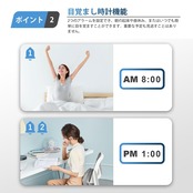 アラーム音はスヌーズ機能付きで、もう少し寝たいあなたをサポート。簡単に設定できるため、使用時のストレスを軽減します。目覚まし時計としての役割を果たしつつ、心地良い目覚めを促します。
