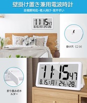 【壁掛け置き時計兼用・電池式で大変便利】このデジタル電波時計は壁掛けと卓上置きの両方に対応しており、様々な使用シーンに適応します。寝室、リビングルーム、オフィス、学校など、どんな場所にもマッチするおしゃれなデザインです。掛け・置き両用、電池式であるため(単3型アルカリ乾電池×2本、別売り)、配線の必要がなく、設置や移動が非常に便利です。見やすい大きめのLCDと柔らかいフォルムが特徴の電波デジタル目覚まし時計です。多機能でありながらも操作は簡単です。多用途:リビングルーム、ベッドルーム、ジムに壁掛けでき、デスクトップやベッドサイドクロックとしても適しています!